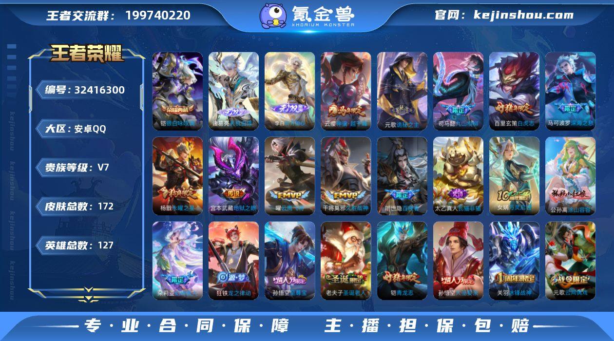 安卓Q-V6-永恒钻石IV段位-126英雄-228皮肤-1典藏皮肤-10传说-56史诗【荣耀典藏】:鲁班七号星空梦想【传说皮肤】:桑启鸣野蒿,虞姬启明星使,达摩黄金狮子座,后羿黄金射手座,诸葛亮武陵仙君,貂蝉仲夏夜之梦,孙尚香末日机甲,宫本武藏地狱之眼,孙悟空地狱火,狄仁杰超时空战士【限定皮肤】:白起狰,李白谪仙醉月,狄仁杰阴阳师,虞姬凯尔特女王,赵云皇家上将,妲己热情桑巴,嬴政优雅恋人,嬴政白昼王子,孙膑妖精王,芈月重明,吕布猎兽之王,元歌云间偶戏,夏侯惇朔风刀,曹操烛龙,典韦穷奇,典韦蓝屏警告,狄仁杰魔术师,狄仁杰万华元夜,达摩沙漠行僧,项羽海滩派对,老夫子醍醐杖,关羽冰锋战神,貂蝉逐梦之音,程咬金演武夺筹,韩信逐梦之影,兰陵王金庭之子,花木兰青春决赛季,花木兰默契交锋,亚瑟潮玩骑士王,孙悟空至尊宝,孙悟空大圣娶亲,牛魔御旌,虞姬启明星使,钟馗驱傩正仪,杨玉环遇见飞天,女娲朔望之晖,雅典娜单词大作战,雅典娜黎明之约,蔡文姬繁星吟游,太乙真人饕餮,太乙真人华丽摇滚,鬼谷子原初探秘者,诸葛亮武陵仙君,百里玄策原初追逐者,弈星混沌棋,沈梦溪大漠名商,明世隐疑决卦,裴擒虎李小龙,狂铁御狮,米莱狄御霄,云中君纤云...