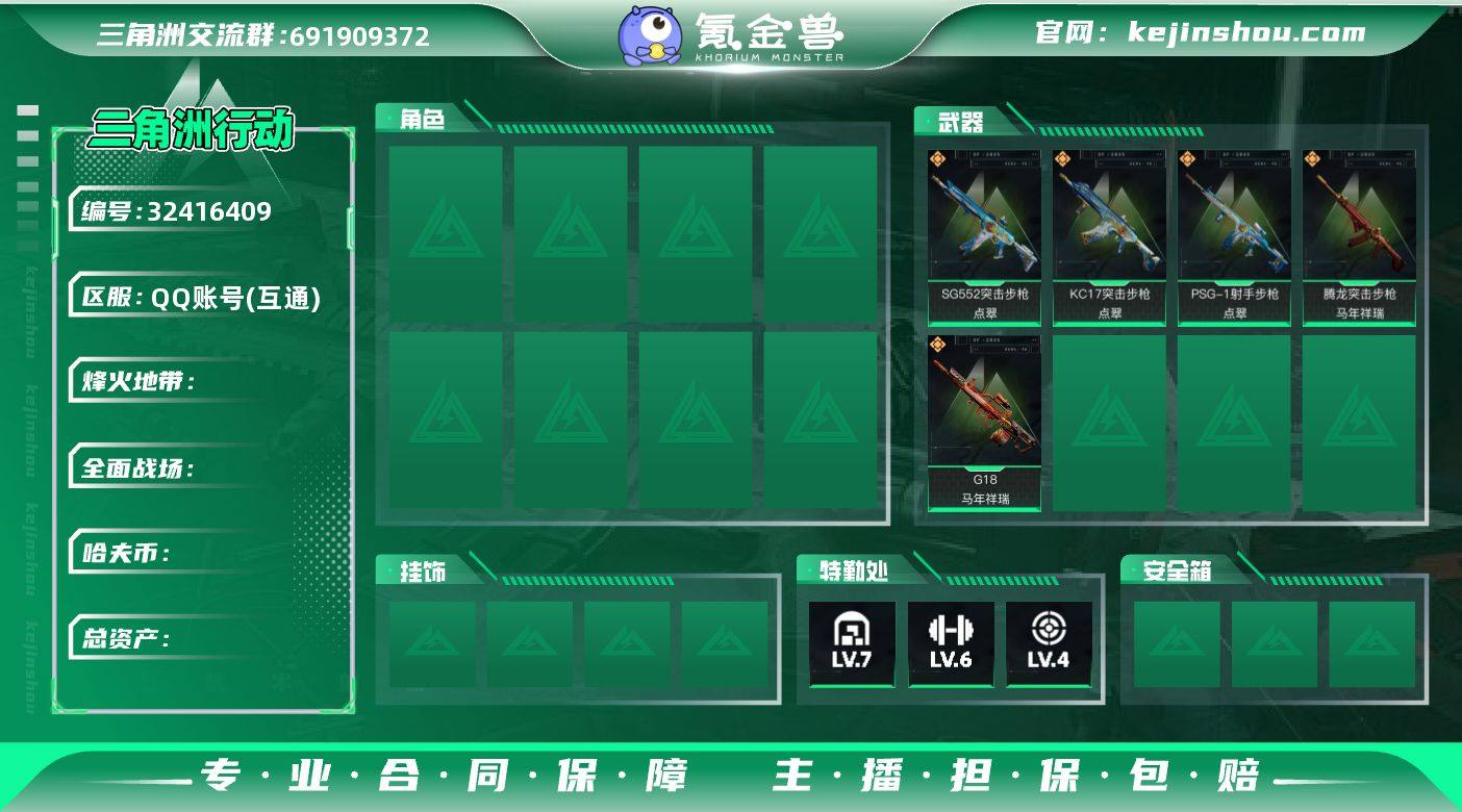 YQ-总资产295.1m/哈夫币127m/部门22221 【高物资纯币猛攻号 点翠套 训中6级 靶场4级 仓库7级 仓库多大红小金 】 等级 60 烽火段位 钻石IV 橙:SG552点翠,PSG点翠,KC17点翠,腾龙马年祥瑞,G18马年祥瑞, 限时道具/段位以实际验号为准。如账号因没有维护,赛季更新等不可抗因素发生变化,不属于账号质量问题差""