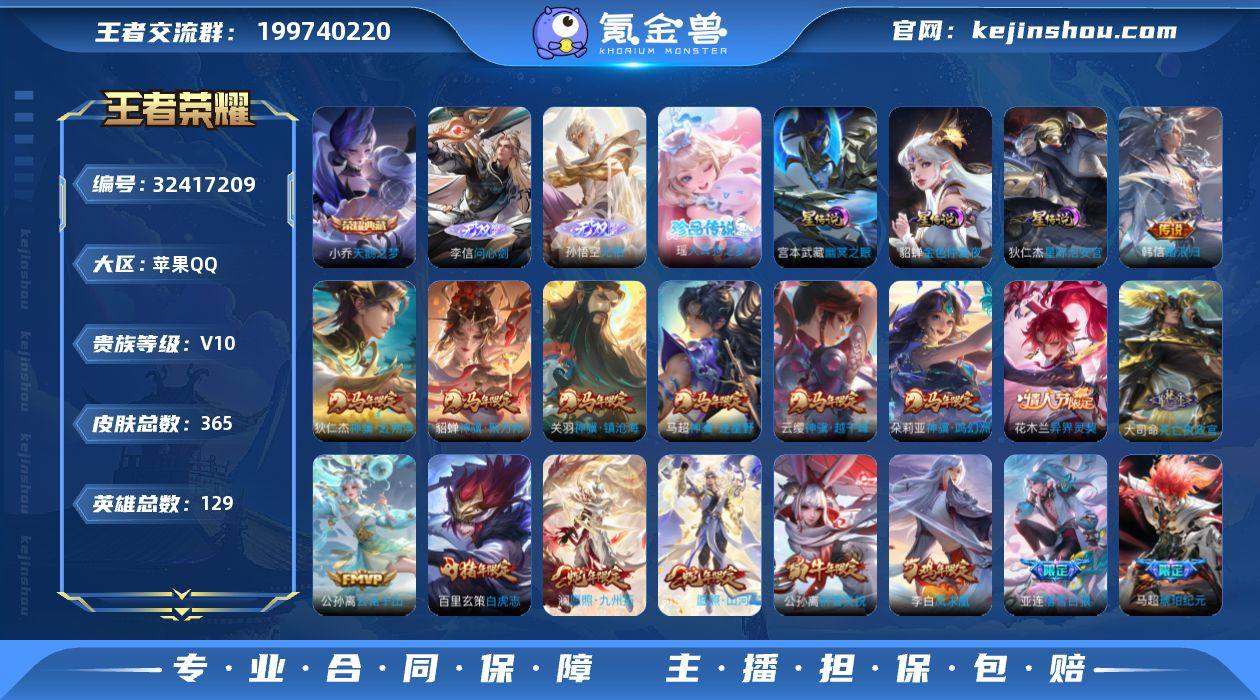 【aswz1678】苹果Q-V10-最强王者段位-129英雄-365皮肤-1典藏皮肤-1典藏英雄-2无双-1珍品传说-49传说-113史诗 【英雄全皮】:孙权全皮,大司命全皮,马超全皮,敖隐全皮,蒙恬全皮,司空震全皮,影全皮 【荣耀典藏】:武则天英雄,小乔天鹅之梦 【无双皮肤】:李信问心剑,孙悟空无相 【珍品传说】:瑶大耳狗之梦 【传说皮肤】:韩信踏浪归,云缨神骥越千峰,关羽神骥镇沧海,朵莉亚神骥鸣幻洲,狄仁杰神骥赴朔漠,貂蝉神骥聚万邦,马超神骥逐星野,花木兰异界灵契,大司命死亡执政官,公孙离云诺千山,司空震愿照山河定,澜愿照九州拓,裴擒虎祥瑞亨通,嬴政玄雷天君,桑启鸣野蒿,亚连落雪白狼,马超琥珀纪元,艾琳觅芳踪,露娜霜月吟,马可波罗妄想实况,东皇太一灼幽烈阳,诸葛亮鹤羽星尊,夏洛特浮生妄,虞姬无限倾心,曜山海苍雷引,吕布怒海麟威,马超无双飞将,公孙离祈雪灵祝,铠绛天战甲,镜炽阳神光,虞姬启明星使,曜云鹰飞将,李信一念神魔,张良黄金白羊座,干将莫邪久胜战神,达摩黄金狮子座,百里玄策白虎志,花木兰冠军飞将,梦奇胖达荣荣,后羿黄金射手座,杨戬永曜之星,诸葛亮武陵仙君,貂蝉仲夏夜之梦,李白凤求凰,孙尚香末日机甲,宫本武藏地狱之眼,孙...
