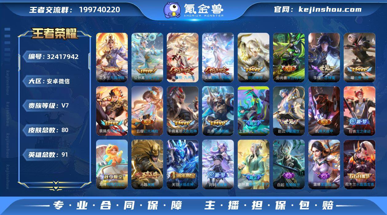 【933198】[17449672]V7 1典藏 14传说 91英雄 80皮肤 可修改实名 女号 【稀有英雄】敖隐(小龙人),嬴政(始皇帝),韩信(韩跳跳),夏洛特(夏师傅),艾琳,橘右京(橘子),赵云 【荣耀水晶】九霄神辉(木兰典藏) 【传说皮】幻光神枪,云诺千山,祥瑞亨通,末日机甲-孙尚香(绿蚂蚱),一念神魔,淬星耀世,久胜战神,云鹰飞将(小将军),炽阳神光,绛天战甲(鸡嘴战神),妄想奇谈 【史诗皮】星界特工,茶境仙,苍鳞隐世,器灵·浮梦炉,化蝶舞,鸭鸭历险记-刘禅,龙之律动,紫霞仙子,黄金分割率,特工魅影,偶像歌手,龙骑士(小龙虾),猫狗日记-大乔,水果甜心,天才门将,德古拉伯爵,天秀·启明,水晶猎龙者,鹰眼统帅,魅力维加斯 【限定皮】愿照·九州拓(澜年限),愿照·千秋盛(女娲年限),神威(电光马子),怒海麟威,冰锋战神 【普通皮】谧流熔炉,访茗客,雪境奇遇-西施,金福满堂,玫蓝誓约,街头霸王,景韶洛都,浪漫序章,虚灵犬护,潮玩士官长,鸭鸭历险记-沈梦溪,春野闲踪,秘证寻踪,灵野札记,命运加冕,布丁狗之约,逆浪荇歌,死霸装,太极少年,时空谍影,胡桃狂想曲,万事如意,五福同心,龙腾万里,海滩派对,皇家上将,魔术师,掌控之力,万象初新,红桃皇后,阴阳师,死亡骑士,忍·炎影,丁香结,白色死神,拳王,踏雪寻梅,龙域领主,第七人偶,赤焰...