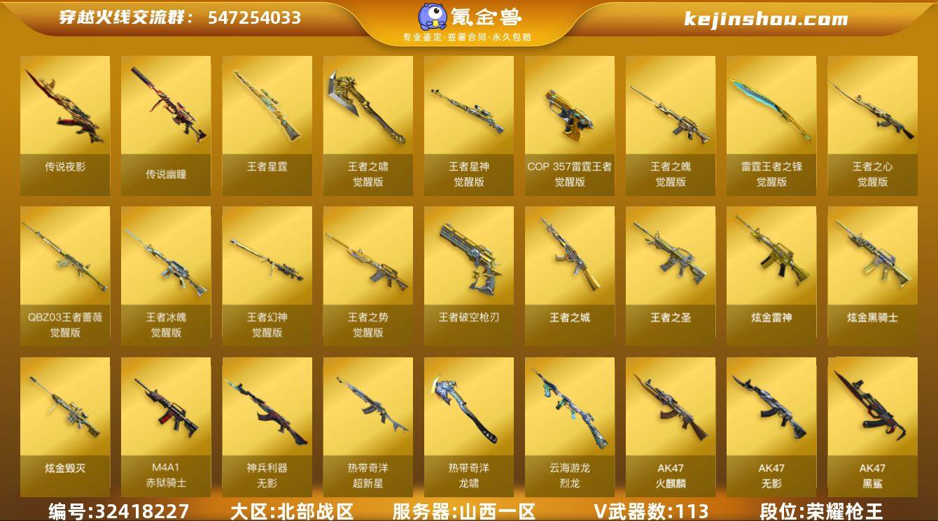 /西部/陕西一区/【大师3】/Lv.102 荣耀元帅/VIP6/168V/【三防传说】/传说影煞/传说灵眸/幻神/幻神宠儿/幻神荣耀世冠白鲨/幻神纸灯龙/幻神黄忠/【星神三件套】/星神/星神音效卡/星神巅峰荣耀/星神冠军之星/星神枪娘默/QBZ金色蔷薇/金色蔷薇纸灯龙/【白虎三件套】/白虎/白虎音效卡/白虎霓裳机甲/白虎暗星/白虎电玩蓝兔/玄武/QBZ王者蔷薇/王者芳薇/M200竞技荣光套/神工天巧套/幻灵套/柯尔特冠军之特/柯尔特竞技荣光/柯尔特电竞装甲/COP幻灵/*2/COP雷霆/USP神工天巧/炽芒蝶刃/炽芒蝶刃破浪逐光/炽芒蝶刃冠军炽芒/6烈龙/3烈狱/七套幻灵雷/【音效卡】/雷神音效卡/黑骑士音效卡/毁灭音效卡/【枪皮】/毁灭SVCFPLS16/毁灭枪娘巴雷特/毁灭青帝/极光高能霹雳/天龙传奇白鲨/裁决流光秘银/火麒麟荣耀世冠AG/火麒麟传奇EVEN/火麒麟QG战对/火麒麟心动糖果/雷神白鲨/雷神RLGD/雷神宠儿/雷神宇航兔/雷神虎将/荣耀之魄/雷神烈虎/【四防角色】/机械姬/王者玲珑小乔/王者迷迭香/王者春/王者潘多拉/灵狐者职业经理/【小人枪】/雷神精英刀锋/Cat刀锋/雷神小红/C.A.T/牛牛AK47/火麒麟灵狐/天龙乔伊教练/炼狱迷你小刚/迷你宝贝/【道具】/永久烟雾头/护目镜/各种戒指/各种光效/各种玩偶/永久AC/永久雷包/细节看图/【此账号封十年已解】