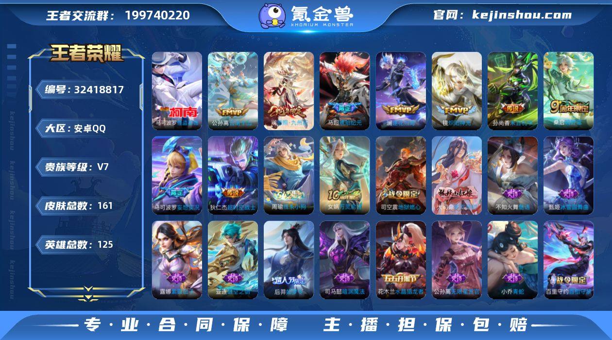 王者19785,不可二次,3271紫星币,245夺宝,安卓Q-V7-永恒钻石IV段位-127英雄-254皮肤-9传说-52史诗 【英雄全皮】:鬼谷子全皮 【传说皮肤】:后羿神树通天,虞姬愿照岁时盈,桑启鸣野蒿,赵云淬星耀世,刘备时之恋人,虞姬云霓雀翎,梦奇胖达荣荣,孙尚香末日机甲,宫本武藏地狱之眼 【限定皮肤】:白起狰,狄仁杰阴阳师,虞姬凯尔特女王,赵云皇家上将,赵云引擎之心,孙尚香蔷薇恋人,庄周高山流水,孙膑妖精王,扁鹊炼金王,芈月重明,吕布猎兽之王,周瑜赤莲之焰,夏侯惇朔风刀,曹操烛龙,典韦穷奇,马可波罗山海玄木吟,狄仁杰魔术师,狄仁杰万华元夜,达摩沙漠行僧,项羽海滩派对,老夫子醍醐杖,程咬金演武夺筹,韩信飞衡,兰陵王驯魔猎人,兰陵王金庭之子,牛魔御旌,李元芳云中旅人,钟馗驱傩正仪,杨玉环遇见飞天,蔡文姬繁星吟游,太乙真人饕餮,鬼谷子原初探秘者,鬼谷子五谷丰年,苏烈千军破阵,弈星混沌棋,沈梦溪大漠名商,明世隐疑决卦,裴擒虎李小龙,裴擒虎擒涛扼浪,狂铁御狮,米莱狄御霄,云中君纤云弄巧,上官婉儿梁祝,嫦娥拒霜思,嫦娥暖冬兔眠,西施玲珑珍味,鲁班大师探海日志,桑启海盐诗旅,暃星界游侠,戈娅驭风魔法,艾琳女武神,阿古朵江河...