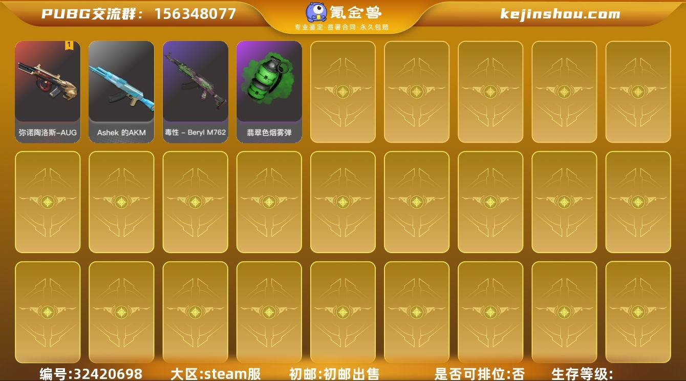 牛头aug加绝版绿色烟雾弹,滑雪镜,双马尾多皮肤发型工坊还有一些图样,无充值记录送初始邮箱!