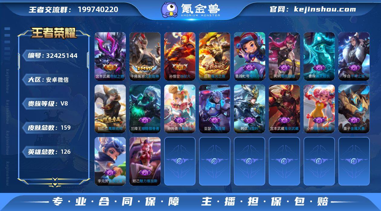 V8 6传说 126英雄 159皮肤 可修改实名 女号