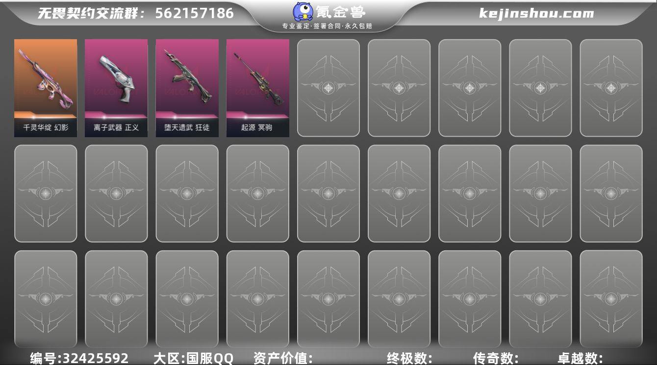 8橙皮 3紫皮 16皮肤 19英雄 54卡面 420已用源晶 未定级段位 【佩枪皮肤】鬼魅-奇点//2.0,正义-离子武器 【步枪皮肤】狂徒-创·纪元,幻影-黯夜怪谈,2025全球冠军赛 狂徒,狂徒-光荣异象,狂徒-堕天遗武,幻影-千灵华绽 【狙击枪皮肤】冥驹-起源 【机枪皮肤】战神-千灵华绽//2.0 【挂饰】薰衣草之心挂饰,V26第一幕纪念币 挂饰,V25第三幕:黑铁 挂饰