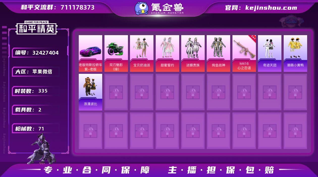 4粉装 2特效枪 2载具 1印记 可二次 可修改实名