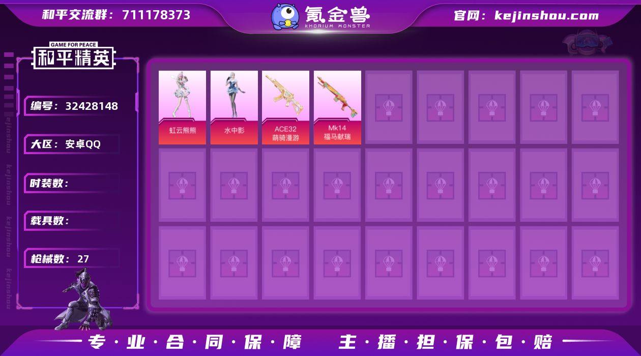 【0载具 2特效枪 2粉装 27枪皮 14套装】套装-老实芭蕉,角色-虹云熊熊,角色-水中影,ACE32-萌骑漫游,Mk14-福马献瑞,云朵驼驼飞行器,马上有福飞行器,极意拳锋飞行器df2-14,编号:SXLFP50