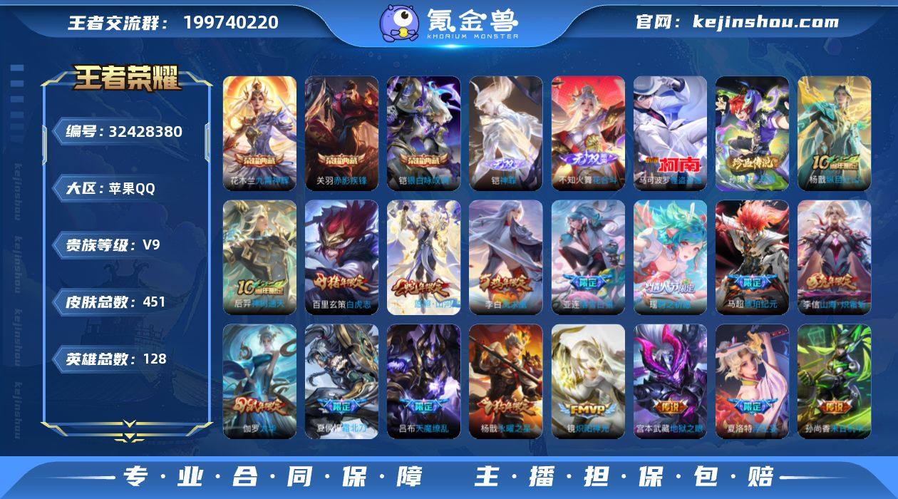 【1.15国50杨戬 1.35国50白起 1.13国100夏侯惇 省5孙策 省8孙小满】【还有3500紫星币】【永久包售后】苹果Q-V9-至尊星耀I段位-128英雄-451皮肤-3典藏皮肤-2无双-2珍品传说-41传说-143史诗 【英雄全皮】:刘禅全皮,典韦全皮,孙权全皮,鬼谷子全皮,亚连全皮,敖隐全皮,夏洛特全皮,司空震全皮,戈娅全皮,空空儿全皮,影全皮,姬小满全皮 【荣耀典藏】:花木兰九霄神辉,关羽赤影疾锋,铠银白咏叹调 【无双皮肤】:铠神罪,不知火舞花合斗 【珍品传说】:孙策时之奇旅,马可波罗怪盗基德 【传说皮肤】:杨戬纵目迁山,后羿神树通天,司空震愿照山河定,云缨幻光神枪,桑启鸣野蒿,夏侯惇霜北刀,铠冥王哈迪斯,亚连落雪白狼,貂蝉曦玄引,典韦战鼓燎原,马超琥珀纪元,吕布遇见神鼓,夏洛特浮生妄,李信山海炽霜斩,马超无双飞将,孙策末日机甲,瑶时之祈愿,王昭君乞巧织情,西施游龙清影,兰陵王默契交锋,镜炽阳神光,虞姬启明星使,关羽武圣,曜云鹰飞将,李信一念神魔,刘备时之恋人,伽罗太华,貂蝉猫影幻舞,张良黄金白羊座,干将莫邪久胜战神,达摩黄金狮子座,百里玄策白虎志,花木兰冠军飞将,后羿黄金射手座,杨戬永曜之星,貂蝉仲夏夜之梦,李白凤求凰,孙尚香...
