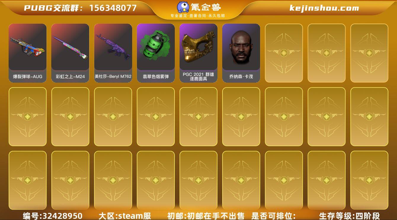 A10510/stem/可排位/4段430级/3张蓝图/6级小兔巡逻队 - Mk12/6级午夜惊魂 - Kar98k/5级朱雀/5级烈日灼烧 S1897/4级黑暗深渊 M762/2级最后的小夜曲M24/1级G-DRAGON - AUG/[异色] 小兔巡逻队 - Mk12/紫色烟枪/紫色烟雾弹/迈凯伦跑车/阿斯顿马丁跑车/滑雪镜/金面/渔夫帽/北极熊套装/高帮运动鞋/针织帽/白虎背包/双马尾/详情看图