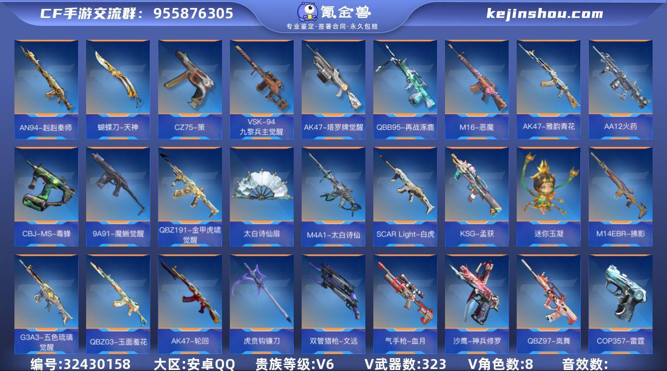 【编号89454可秒换绑】【店长推荐捡漏号!】8英雄角色数-315英雄武器数 【王者系列】:王者之心,王者之神,王者之兽,王者之魂,王者之烈 【热门武器】:KSG-孟获,81式-光明之神,SCAR-文远,AK47-孟德,M4A1-仲达,AK47-奉先,AK47-游骑兵,M4A1-游骑兵,M200-幻神,AWM-妙才,AWM-游骑兵,COP 357-雷霆,81式-阿波罗 【角色】:零,萝拉,幽灵刀锋-觉醒,瞳,零-水下丽影,凌霄,炽天使-X,零-新生 【英雄武器】:AK47-无影,AK47-火麒麟*3,AK47-麒麟,AK47-黑武士觉醒,AK47-耀金伯爵,AK47-游骑兵,AK47-冰魂,AK47-机械迷城,AK47-变色龙,AK47-孟德,AK47-幸运日觉醒,AK47-猩红传说,AK47-沙漠郡主-二觉,AK47-雷麒麟*2,AK47-心动次元,AK47-奉先,AK47-血武士*2,AK47-华夏传说,AK47-黑鲨,AK47-木兰,AK47-轮回,AK47-雅韵青花,AK47-塔罗牌觉醒,AK47-谜城烟火,M4A1-雷神*2,M4A1-黑骑士,M4A1-黑龙,M4A1-死神*3,M4A1-玫瑰精灵,M4A1-游骑兵,M4A1-龙血,M4A1-仲达,M4A1-竞界荣光,M4A1-赛博雷神,M4A1-海骑士,M4A1-堕天神,M4A1-心动次元觉醒,M4A1-运输船,M4A1-猎神,M4A1-千变,M4A1-太白诗仙,SCAR-幽暗骑士觉醒,SCAR-文远,SCAR Light-白虎,SCAR-...