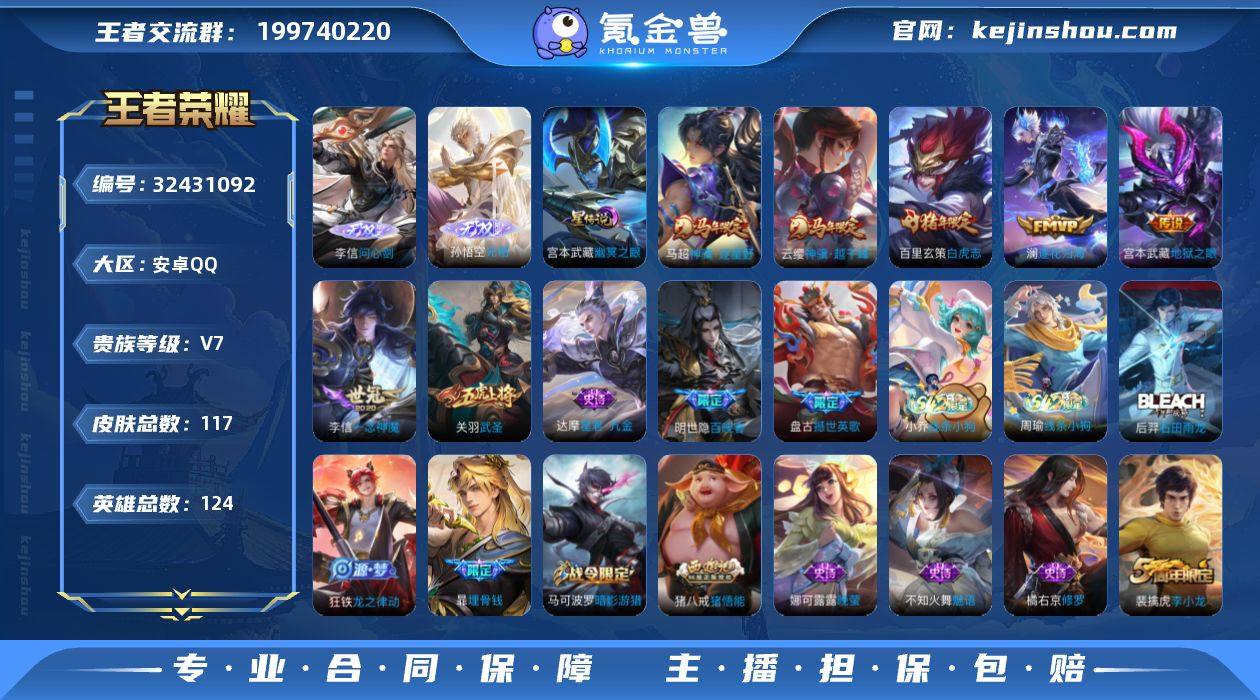 王者19701,不可二次,扣扣钱包无法注销,19按键,安卓Q-V7-最强王者段位-126英雄-251皮肤-1典藏皮肤-1珍品传说-11传说-71史诗 【英雄全皮】:孙权全皮,海诺全皮 【荣耀典藏】:夏侯惇无限飓风号 【珍品传说】:伽罗沧流箭 【传说皮肤】:关羽神骥镇沧海,司空震愿照山河定,澜愿照九州拓,虞姬愿照岁时盈,桑启鸣野蒿,孙悟空齐天大圣,李信山海炽霜斩,王昭君乞巧织情,干将莫邪久胜战神,梦奇胖达荣荣,宫本武藏地狱之眼 【限定皮肤】:蒙犽顽岩魄,蔡文姬夏日便利店,虞姬夏日便利店,姜子牙天穹之誓,杨戬破阵退雄兵,狄仁杰阴阳师,赵云皇家上将,墨子神迹守卫,孙尚香蔷薇恋人,庄周高山流水,钟无艳超时空战士,扁鹊奇幻香踪,元歌无心,甄姬落雪兰心,马可波罗暗影游猎,马可波罗山海玄木吟,狄仁杰魔术师,达摩沙漠行僧,项羽海滩派对,老夫子航海奇遇记,兰陵王金庭之子,孙悟空齐天大圣,李元芳银河之约,李元芳云中旅人,钟馗驱傩正仪,杨戬潮玩骑兵,鬼谷子原初探秘者,鬼谷子五谷丰年,苏烈千军破阵,沈梦溪大漠名商,裴擒虎李小龙,裴擒虎擒涛扼浪,李信山海炽霜斩,嫦娥暖冬兔眠,鲁班大师探海日志,桑启海盐诗旅,暃星界游侠,阿古朵江河有灵,张良古海寻...
