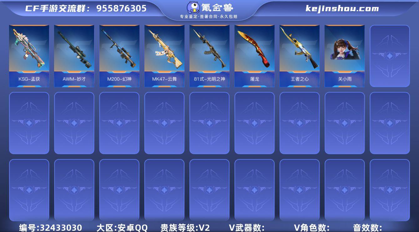 TZ2853【250V M200幻神 王者之兽 王者之盘 王者之狱 M12S雷霆王者 王者之霆】【等级】96【区服】手Q-安卓【金角色数】2【金武器数】250【金V角色】炽天使-X 零-水下丽影【金V武器】M4A1-死神 马来剑-毁灭 沙鹰-修罗 M4A1-死神 AK47-无影 改装GLOCK-木兰 AK47-木兰 巴雷特-毁灭 刘易斯-天使 GM6-战争风云觉醒 M4A1-千变 9A91-天神 寒霜烈龙 5-极光 CZ75-穷奇 AN94-四凶觉醒 USP-神罚 AWM-裁决 双持沙鹰-雷麒麟 09式狙-天神 AK47-血武士 M4A1-雷神 地狱烈炎 高爆手雷-无限 AK47-雷麒麟 CZS2-血月 汤姆逊-烈龙 秋逸觉醒 CZS2-心动次元 CZS2-心动次元 AWM-天龙 KSG-极光 SCAR-探星者 09式狙-天神 QCW05-变形金刚·大黄蜂 死神闪光弹 AK47-沙漠郡主-二觉 QBZ03-金色蔷薇 斩魔刀 QBB95-极光 PP19野牛-造纸术 AWM-天使 双持柯尔特-极光 地狱火 AK47-轮回 巴雷特-毁灭 屠龙 尼泊尔-机械纪元 QCW05-变形金刚·大黄蜂 神罚战斧 气手枪-血月 M4A1-猎神 汤姆逊-烈龙 AA12-火药 QBZ03-金色蔷薇 地狱火 M4A1-堕天神 擎天 电锯-毒蜂 马来剑-毁灭 09式狙-天神 屠龙 屠龙 M4A1-太白诗仙 手斧-机械迷城 AA12-火药 CBJ-MS-毒蜂 巴雷特-毁灭 QBZ191-金甲虎啸觉醒 AK47-火麒麟 巴雷特-极光 AK47-雅韵青花 唐刀-华夏传说 AUG-机械纪元 AK47-木兰 QSZ92-华夏传说 屠龙 AWM-指南针 打击者-天神 双持斯泰尔-天使 神罚战斧 血月 巴雷特-极光 加特林-堡垒 USP-机械迷城 巴雷特-毁灭 98K-星神 M4A1-龙血 沙鹰-天神 AK47-木兰 高爆手雷-神工天巧 唐刀-大唐荣耀 巴雷特-极光 巴雷特-极光 M4A1-破空冰刃 炽芒蝶刃 AK47-樱斗士-二觉 98K-黑骑士 AK47-黑武士觉醒 AK47-破空冰刃