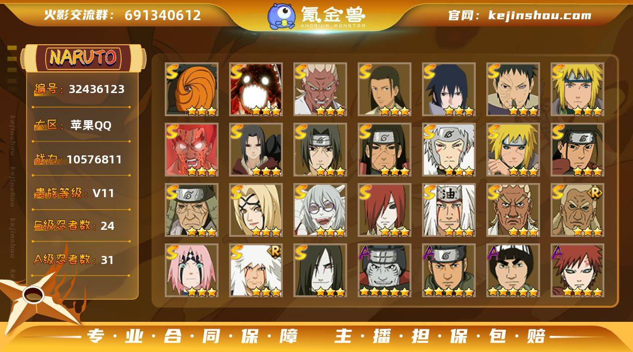 IOS/23S忍/34A忍/战力810W/V11/区服640 【S忍者】 宇智波带土「十尾人柱力」,宇智波佐助「漩涡鸣人」,宇智波止水「须佐能乎」,宇智波斑「五影会谈」 ,大筒木桃式,宇智波斑「秽土转生·解」,千手柱间「木叶创立」,漩涡鸣人「九喇嘛连结」,自来也「舞之豪杰」,旗木卡卡西「须佐能乎」,大筒木舍人「最终章」,自来也「传说中的三忍」,漩涡鸣人「暴怒·第六尾」,宇智波鼬「秽土转生」,药师兜「仙人模式」,宇智波斑「白面具」,千手扉间「秽土转生」,长门「秽土转生」,千手扉间,宇智波鼬「须佐能乎」,佩恩「天道」,波风水门,波风水门「九喇嘛连结」, 【A忍者】 小南「神驹佑将」,机械鸣人「初始形态」,巳月「仙人模式」,迈特凯「青春爆炸」,不缘,日向宁次「忍界大战」,漩涡博人「桃式显现」,宇智波鼬「夏日限定」,旗木卡卡西「幻之真容」,李洛克「忍界大战」,大蛇丸「新春限定」,不动,蝎「绯流琥」,宇智波泉奈,宇智波带土「漂泊浪客」,神农「羁绊」,桃地再不斩「秽土转生」,角都「秽土转生」,长门「青年」,佩恩·六道「漂泊浪客」,三船「青年」,宇智波佐助「须佐能乎」,千代「近松十人卫」,秋道丁次「忍界大战」,宇智波佐助「万花筒写轮眼」,飞段「死司凭血」,飞段,迪达拉,我爱罗「疾风传」,蝎,干柿鬼鲛,宇智波鼬,猿飞阿斯玛,迈特凯, PX_2484254