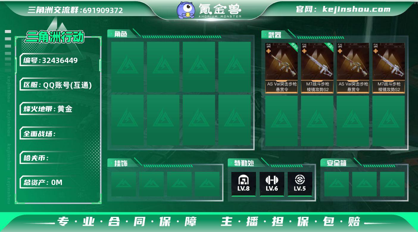 ABC9279/QQ区/钱包注销/【总资产:315M+哈夫币:2360W+近战武器-北极星+近战武器-信条+近战武器-黑海+S7顶级安全箱+M4A1突击步枪-棱镜攻势(优品C)+骇爪水墨云图+红狼蚀金玫瑰+露娜黑天际线+蜂医送葬人无题密令+无名夜鹰+红狼电锯惊魂+深蓝不破誓约】武器皮肤268;烽火60级:黑鹰Ⅳ,战场:尉官Ⅳ,【安全箱】S7顶级安全箱;【特勤处等级】仓库LV.8,靶场LV.6,训练中心LV.7,收藏室LV.1,潜水中心LV.1;【捆绑包11】黑海捆绑包,北极星捆绑包,鹅鸭杀捆绑包,蚀金玫瑰捆绑包,黑天际线捆绑包,电锯惊魂干员捆绑包,特斯拉线圈捆绑包,无机神经元捆绑包,捞点薯条捆绑包,信条捆绑包,蝮蛇捆绑包;【干员皮肤7】骇爪水墨云图,红狼蚀金玫瑰,露娜黑天际线,蜂医送葬人无题密令,无名夜鹰,红狼电锯惊魂,深蓝不破誓约;【典藏皮肤】M4A1突击步枪-棱镜攻势(优品C);【近战皮肤】近战武器-黑海,近战武器-北极星,近战武器-信条,近战武器-黑鹰;【步枪皮肤】M4A1突击步枪-棱镜攻势,M4A1突击步枪-阿米娅,M4A1突击步枪-蚀金玫瑰,ASh-12战斗步枪-鹅鸭杀,SG552突击步枪-运动员,AK-12突击步枪-夜鹰,AK-12突击步枪-特斯拉线圈,SCAR-H战斗步枪-启航,SCAR-H战斗步枪-水墨云图,G3战斗步枪-骑士,G3战斗步枪-无机神经元,CAR-15突击步枪-阿米娅,腾龙突击步枪-捞点薯条,K437突击步枪-北极星,KC17突击步枪-电锯惊魂,AKM突击步枪-林中猎手,QBZ95-1突击步枪-曙光,ASh-12战斗步枪-守夜人,ASh-12战斗步枪-无极限,M16A4突击步枪-竞赛选手,AUG突击步枪-蝮蛇,SG552突击步枪-尖端治疗,SG552突击步枪-深海恐惧,SG552突击步枪-哈夫克警备,SCAR-H战斗步枪-囚徒,G3战斗步枪-哈夫克警备,G3战斗步枪-流沙送葬,PTR-32突击步枪-英雄,PTR-32突击步枪-工业狂潮,ASVal突击步枪-尖端治疗,ASVal突击步枪-百步穿杨,腾龙...