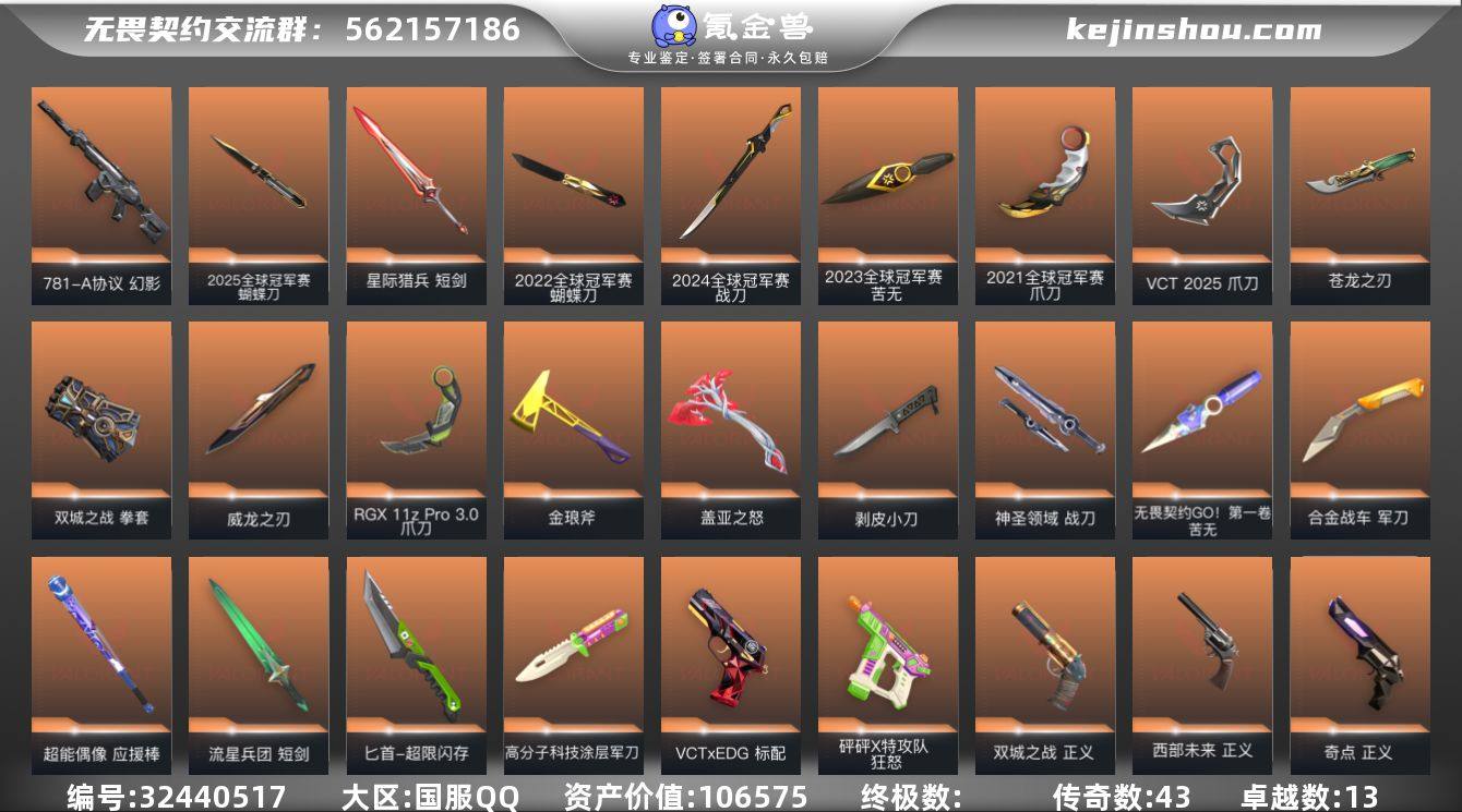 无畏契约几乎满限定(缺怜悯之刃和纂刀),账号捆绑千皮LOL、贵族9的王者、带女皇的毕业逆战未来、CF