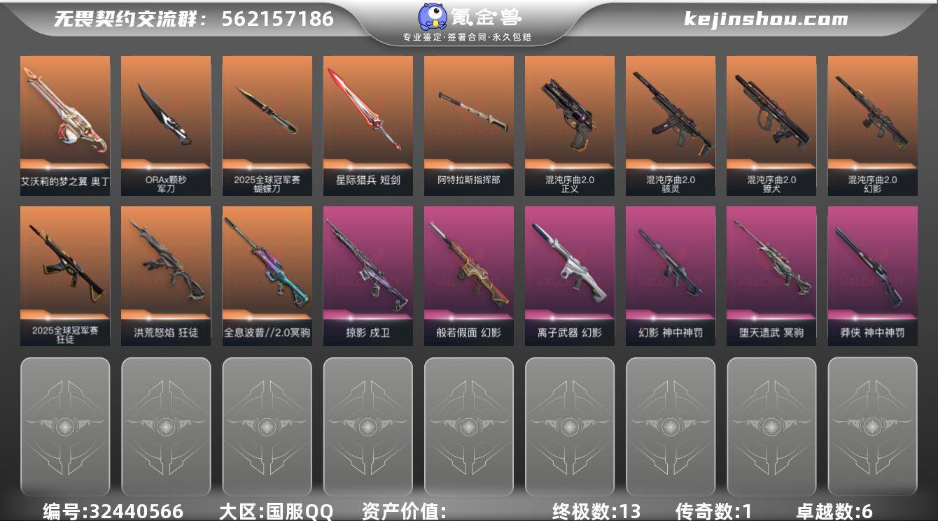 【PTWW3217】终极*13/传奇*1/卓越*6/皮肤*58/等级*106/段位:黄金/2025全球冠军赛/混沌序曲//2.0套装/幻棱/炼狱/维斯/暮蝶/钛狐/壹决/铁臂/捷风/雷兹/幽影/不死鸟/贤者/猎枭/蝰蛇/零/芮娜/奇乐/尚勃勒/霓虹/斯凯/夜露/星礈/K/O/海神/盖可/黑梦/钢锁/2025全球冠军赛 蝴蝶刀/近战武器-碎心裂刃/ORAx颗秒 军刀/混沌链枷/阿特拉斯指挥部/星际猎兵 短剑/2025全球冠军赛 狂徒/狂徒-洪荒怒焰/幻影-混沌序曲2.0/幻影-般若假面/幻影-离子武器/幻影-神中神罚/戍卫-掠影/獠犬-混沌序曲2.0/冥驹-全息波普//2.0/冥驹-堕天遗武/莽侠-神中神罚/奥丁-艾沃莉的梦之翼/骇灵-混沌序曲2.0/骇灵-无限竞技/正义-混沌序曲2.0/鬼魅-宿怨/南瓜盛典 卡面/热舞环节 卡面/正义的化身 卡面/零点嗅探设计图 卡面/无畏契约GO!第一卷:芮娜 卡面/无畏契约GO!第一卷:零 卡面/龍记 卡面/暗枪 卡面/钢锁vs盖可 卡面/代号红色 卡面/新兵报到 卡面/V契约 卡面/无畏契约 卡面/买装还是存钱 喷漆/醒狮贺春 喷漆/红鳞 喷漆/无畏契约GO!第一卷:贤者 喷漆/暴走萝莉 喷漆/松叶 喷漆/蕊形灯 喷漆/胜利属于无畏契约 喷漆/GLHF 喷漆/无畏契约 喷漆/无畏契约GO!第一卷 芮娜 挂饰/无畏契约GO!第一卷 零 挂饰/第九季//第二...