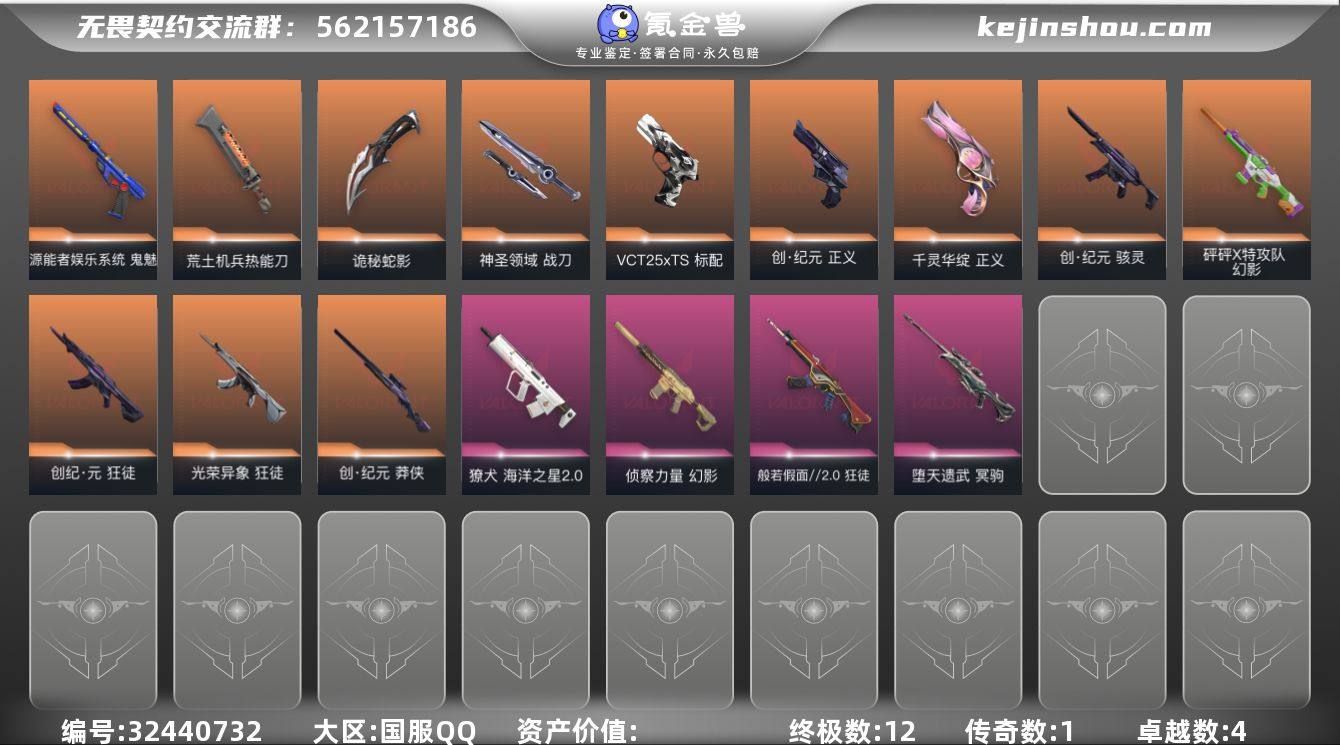 【452】【套装】:2025全球冠军赛套装,神中神罚套装 【英雄】:幻棱,炼狱,维斯,暮蝶,钛狐,壹决,铁臂,捷风,雷兹,幽影,不死鸟,贤者,猎枭,蝰蛇,零,芮娜,奇乐,尚勃勒,霓虹,斯凯,夜露,星礈,K/O,海神,盖可,黑梦,钢锁 【近战武器】:近战武器-2025全球冠军赛 蝴蝶刀,近战武器-神之刃,近战武器-镭切,近战武器-澄湖潋滟,近战武器-荒土机兵 热能刀,近战武器-诡秘蛇影 军刀,近战武器-神圣领域 战刀,近战武器-日耀风暴 遗器 【狂徒】:狂徒-2025全球冠军赛,狂徒-塑水宗,狂徒-冰点凝冻,狂徒-掠影,狂徒-紫阙金琅,狂徒-荒土机兵,狂徒-诡秘蛇影 【幻影】:幻影-异鳞魔蛇,幻影-神中神罚,幻影-神圣领域,幻影-纳米打击,幻影-末日之翼 【戍卫】:戍卫-掠影,戍卫-逆冲蛮牛,戍卫-月球哨兵,戍卫-折光棱晶 【獠犬】:獠犬-神圣领域,獠犬-逆冲蛮牛 【冥驹】:冥驹-离子武器,冥驹-荒土机兵,冥驹-星云暗涌 【飞将】:飞将-末日之翼 【莽侠】:莽侠-神中神罚,莽侠-诡秘蛇影,莽侠-月球哨兵 【战神】:战神-神圣领域 【奥丁】:奥丁-艾沃莉的梦之翼,奥丁-纳米打击,奥丁-末日之翼 【判官】:判官-诡秘蛇影,判官-纳米打击x 【雄鹿】:雄鹿-逆冲蛮牛,...