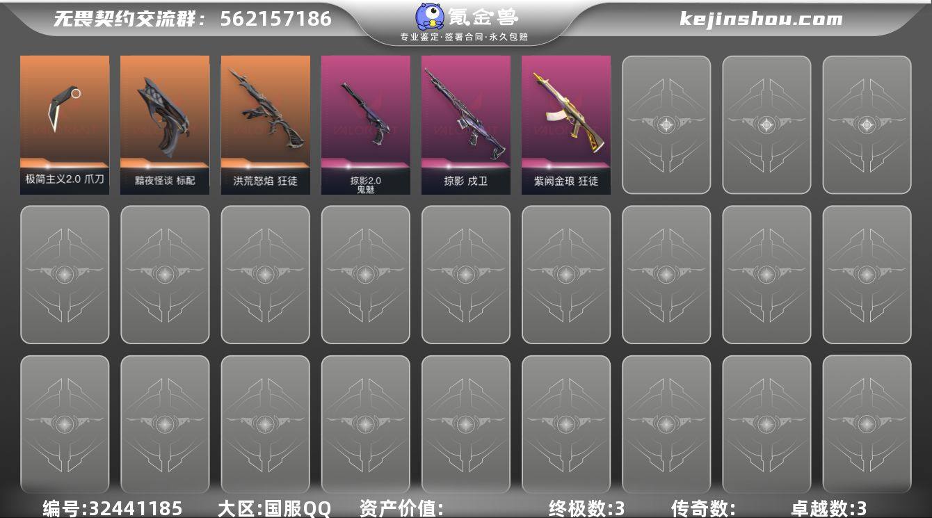 【PTWW2795】终极*3/卓越*3/皮肤*12/等级*150/段位:黄金/幻棱/炼狱/维斯/暮蝶/钛狐/壹决/铁臂/捷风/雷兹/幽影/不死鸟/贤者/猎枭/蝰蛇/零/芮娜/奇乐/尚勃勒/霓虹/斯凯/夜露/星礈/K/O/海神/盖可/黑梦/钢锁/极简主义2.0 爪刀/狂徒-洪荒怒焰/狂徒-紫阙金琅/戍卫-掠影/标配-黯夜怪谈/鬼魅-掠影2.0/鬼魅-诡秘蛇影/无畏契约:蝰蛇 卡面/无畏契约GO!第一卷:芮娜 卡面/无畏契约GO!第一卷:零 卡面/代号红色 卡面/新兵报到 卡面/V契约 卡面/无畏契约 卡面/小丑猫 喷漆/喜欢哪种毒? 喷漆/情绪控制 喷漆/买装还是存钱 喷漆/胜利属于无畏契约 喷漆/GLHF 喷漆/无畏契约 喷漆/天外飞客 挂饰/无畏契约 纪念币 挂饰