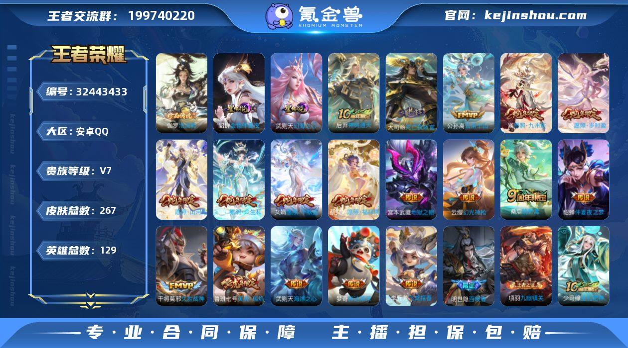 【V7 1珍品 2星传说 19传说 267皮肤 129英雄】可二次,武则天英雄,女皮肤多,辅助号,游走24段,12印记,武则天星传说幻海之心/伽罗珍品传说沧流箭/愿照众生和/寅虎瑞焰/霜北刀/地狱之眼/海洋之心/仲夏夜之梦/神树通天/飞鸢探春/愿照岁时盈/愿照千秋盛/久胜战神/愿照福禄聚/胖达荣荣/云诺千山/死亡执政官/愿照九州拓/愿照山河定/幻光神枪/百晓客/织梦人/涂山容容/乘龙聚宝船/幻珠鲛人/时之奇旅/琥珀纪元/白蛇/遇见神鹿/蔷薇恋人kc313-1078#1718n,编号:YMVOF76