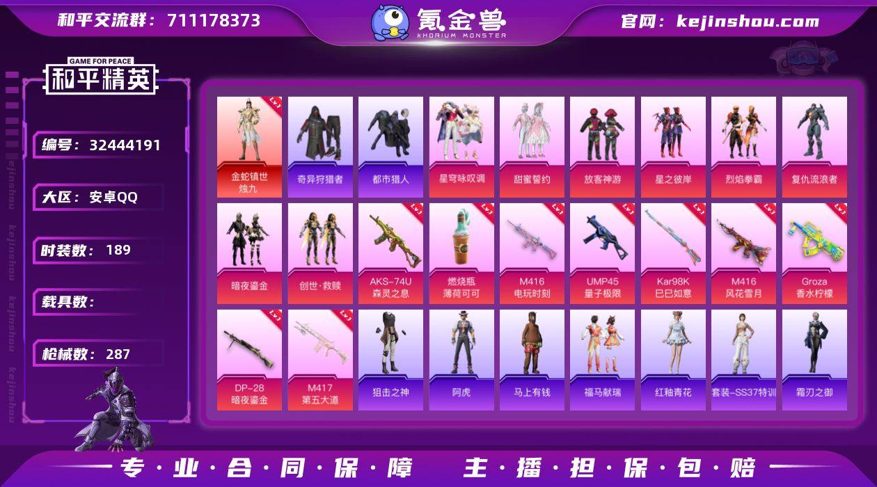 可二次实名【3级红装都市男神11特效枪8粉装 秒换绑不用等】 安卓Q区-94235热力值-19印记-189套装-287枪皮 【1红装】 金蛇镇世-烛九(3级)【2稀有】 都市猎人 Mark.06蓝螳螂【8粉装】 甜蜜誓约 星之彼岸 复仇流浪者 放客神游 烈焰拳霸 暗夜鎏金 创世·救赎 星穹咏叹调【11特效枪】 M416-风花雪月(7级) AKS-74U-森灵之息(5级) 燃烧瓶-薄荷可可(6级) Mk14-福马献瑞(5级) ACE32-萌骑漫游(3级) DP-28-暗夜鎏金(7级) M417-第五大道(7级) GROZA-香水柠檬(7级) Kar98K-巳巳如意(5级) M416-电玩时刻(5级) UMP45-量子极限(5级)【233热门】 浪漫天命 雪山精英(老6服) 鹰眼刺客 大橘为重 罗小黑 团圆交子 瑞龙福将 豚鼠丹丹 SS9特训 SS8特训 SS6特训 SS27特训 SS26特训 SS25特训 SS24特训 SS23特训 SS22特训 SS10特训 S686-魔法学院 Mk14-山经魅狐 M762-乌木金纹 AWM-雷霆特警 AWM-不夜海上花 M416-乌木金纹 GROZA-乌木金纹 SCAR-L-玉兔迎春 GROZA-田园牧歌 M762-天降萌叽 Mk47-乌木金纹 UZI-娇憨猪猪 M416-夜灯 DBS-彩虹符号 M249-彩虹符号 MG3-幻世战舞者 AKM-虎虎生威 AKM-霓虹街区 AKM-星之彼岸 M416-蓝色火焰 GROZA-异彩先驱 M762-暗夜鎏金 众神之王 长空猛禽 战地名士 迎春赐吉 异彩先...