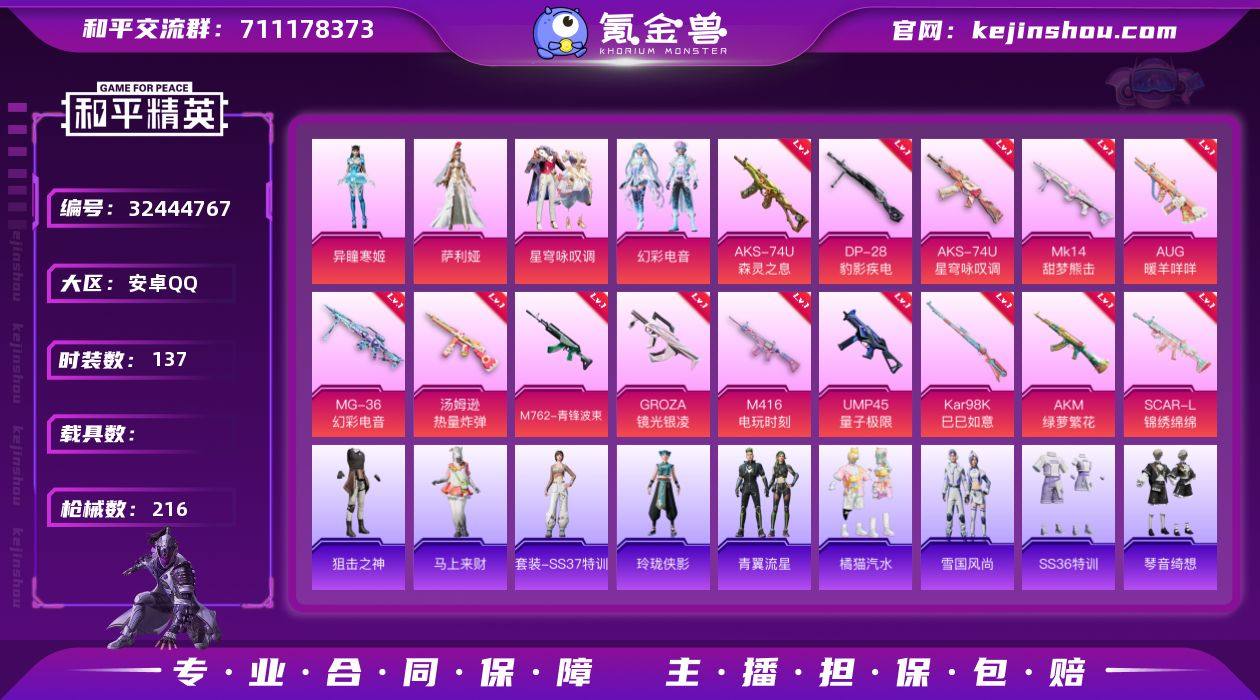 可二次实名【女号16特效枪4粉装 秒换绑不用等】 安卓Q区-58929热力值-11印记-137套装-216枪皮 【4粉装】 角色-异瞳寒姬 角色-萨利娅 星穹咏叹调 幻彩电音【16特效枪】 AKS-74U-森灵之息(5级) Mk14-福马献瑞(5级) AA12-G-萌骑幻想(1级) SCAR-L-锦绣绵绵(5级) AKM-绿萝繁花(5级) 汤姆逊-热量炸弹(5级) M762-青锋波束(5级) Kar98K-巳巳如意(5级) AKS-74U-星穹咏叹调(5级) Mk14-甜梦熊击(5级) AUG-暖羊咩咩(5级) M416-电玩时刻(5级) GROZA-镜光银凌(5级) DP-28-豹影疾电(5级) MG-36-幻彩电音(4级) UMP45-量子极限(5级)【224热门】 迅捷狂鲨 极速红龙 冰公主 白色伏地魔 SS27特训 SS26特训 SS25特训 SS24特训 SS23特训 M762-天降萌叽 M762-彩虹符号 SKS-糯团青竹 M249-彩虹符号 MG3-幻世战舞者 M416-蓝色火焰 M762-第五大道 长空猛禽 夏日倾情 燃烧卡路里 霓虹街区 魅力单车 蓝色运动 黄色运动 海岛探路者 纯真浪花 粉红小猪 M24-奇异狩猎者 S1897-糯团青竹 创世·幻影 Mini14-绯穹魔姬 平底锅-画境星梦 P90-紫矿核心 GROZA-紫矿核心 玲珑侠影 顶瓜瓜 冰河战士 雏菊兔兔 MG-36-薄荷星砂 GROZA-福马献瑞 恋语绒绒 SS34特训 玩偶服-美羊羊 AA12-G-橘猫汽水 达芬奇 漫游都市 朱霞炽焰...