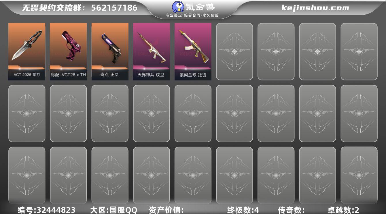 【PTWW3271】终极*4/卓越*2/皮肤*17/等级*52/段位:黄金/VCT 2026 赛季套装/炼狱/暮蝶/铁臂/捷风/幽影/不死鸟/贤者/猎枭/芮娜/尚勃勒/斯凯/夜露/海神/盖可/黑梦/VCT 2026 篆刀/狂徒-紫阙金琅/戍卫-天界神兵/标配-VCT26 x TH/正义-奇点/孵化小能手:破壳鸭 卡面/热舞环节 卡面/无畏契约GO!第一卷:零 卡面/无畏契约GO!第一卷:贤者 卡面/钢锁vs盖可 卡面/代号红色 卡面/新兵报到 卡面/V契约 卡面/无畏契约 卡面/孵化小能手:破壳鸭 喷漆/买装还是存钱 喷漆/酷熊冲浪 喷漆/红鳞 喷漆/无畏契约GO!第一卷:贤者 喷漆/松叶 喷漆/放下武器 喷漆/胜利属于无畏契约 喷漆/GLHF 喷漆/无畏契约 喷漆/孵化小能手:破壳鸭 挂饰/薰衣草之心挂饰/天外飞客 挂饰/双城之战魄罗挂饰/无畏契约 纪念币 挂饰