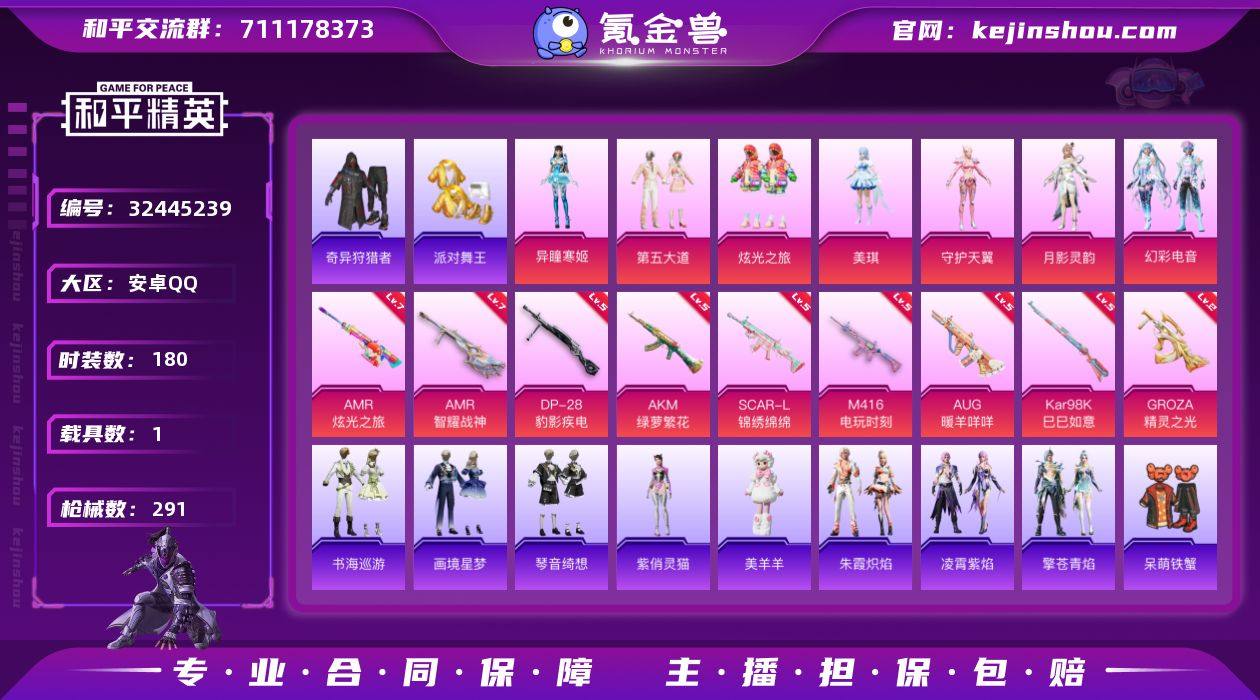 YZJ15919-可二次 安卓Q-4稀有1载具7粉装12特效枪10热门180套装291枪皮 84013热力值 精品女身法号 地铁满天赋 4词条MG36 狗砸精灵之光 第五大道 美琪 炫光之旅 月影灵韵 浅蓝色牛仔衬衣 金鞋 权威小菠萝 奇异狩猎者 粉螳螂 兔兔白日梦 银碳小老虎 神秘黑猫 暮色幽蹄 满级M4电玩 满级AUG暖羊 10印记 历史卓越王牌12星 【4稀有】 奇异狩猎者 AKM-缤纷海域 派对舞王 派对舞王(金靴子) 【1载具】 暮色幽蹄 【7粉装】 美琪 异瞳寒姬 月影灵韵 炫光之旅 守护天翼 幻彩电音 第五大道 【12特效枪】 SCAR-L-锦绣绵绵 (5级) M416-电玩时刻 (5级) AKS-74U-森灵之息 (5级) AKM-绿萝繁花 (5级) Kar98K-巳巳如意 (5级) DP-28-豹影疾电 (5级) AUG-暖羊咩咩 (5级) AMR-智耀战神 (7级) AMR-炫光之旅 (7级) GROZA-精灵之光 (2级) Mk14-福马献瑞 (5级) UMP45-萌骑冒险 (3级) 【10热门】 8号机 小丑鱼 龟仙人 呆萌铁蟹 兔兔白日梦 银碳小老虎 神秘黑猫 破蛋小黄鸡 弄潮海豚 S686-奇异狩猎者 【1头盔】 深海小丑鱼头盔 【1背包】 深海小丑鱼背包 营地ID:902773829