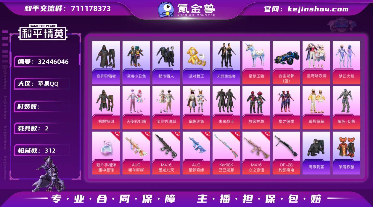 【身法素材号 地铁满天赋 3钻苏尔南暗潮!都市 金鞋 天网 特训 8级星梦奇缘AUG】c27491-【无二次】【因赛季更新游戏段付以上号为准!】 苹果Q-7稀有2载具12粉装8特效枪15热门253套装312枪皮 10印记 历史卓越王牌12星 【7稀有】 奇异狩猎者 AKM-缤纷海域 都市猎人 浪漫天命 派对舞王 天网终结者 派对舞王(金靴子) 【2载具】 合金龙骨蓝色 星梦玉骢 【12粉装】 梦幻火箭 宝贝奶油派 天使彩虹糖 小舞灵珑 星穹咏叹调 幻影战神 放客神游 极限特训 未来战士 童趣迷兔 暖熊萌萌 星之彼岸 【8特效枪】 M416-心之恋语 (7级) M416-墨龙九天 (3级) Kar98K-巳巳如意 (5级) DP-28-豹影疾电 (5级) AUG-暖羊咩咩 (5级) AUG-星梦奇缘 (8级) Mk14-福马献瑞 (5级) 破片手榴弹-瓶中星球 (7级) 【15热门】 Mark.06 小丑鱼 龟仙人 雪山精英 东方飞龙 呆萌铁蟹 鹰眼刺客 深海小丑鱼 暗影哥特 粉红小猪 漫步者 破蛋小黄鸡 黑色刀锋 极速红龙 弄潮海豚 【3飞行器】 龙翔九天飞行器 深渊漩涡飞行器 庄周梦蝶飞行器 【2头盔】 梦幻火箭头盔 甜心宝贝头盔 【3背包】 梦幻火箭背包 甜心宝贝背包 深海小丑鱼背包