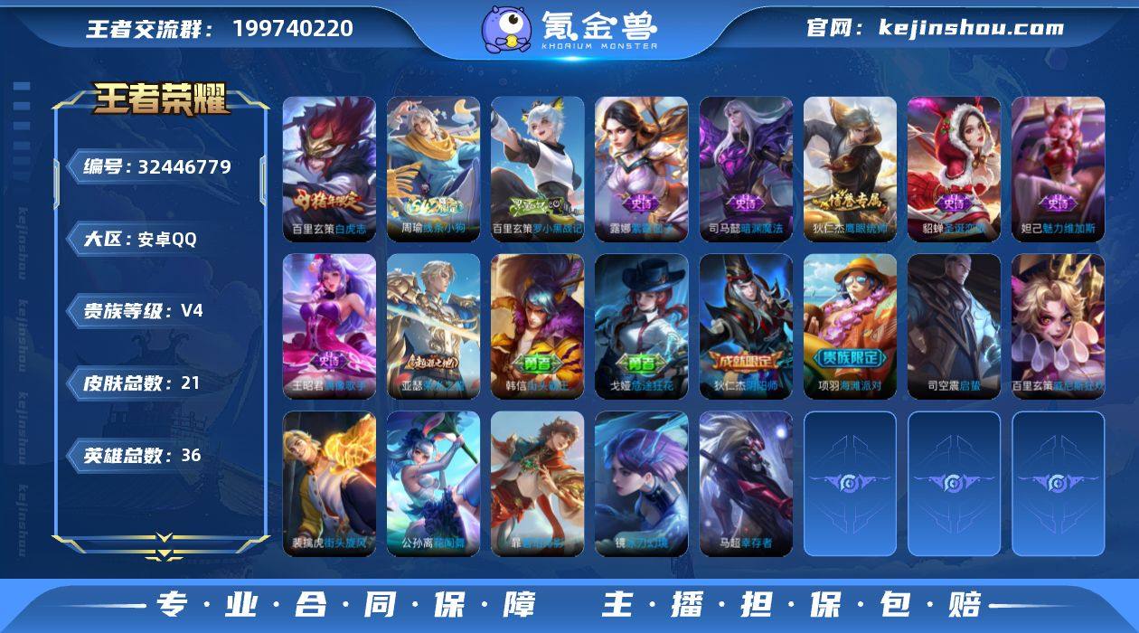 18622|精品脱坑小号 低价出 (白虎志) 安卓QQ 21皮 贵族4级 1传说 7史诗【传说皮肤】白虎志【史诗皮肤】罗小黑战记,暗渊魔法,魅力维加斯,鹰眼统帅,偶像歌手,圣诞恋歌,紫霞仙子【勇者皮肤】荣光之誓,线条小狗,危途狂花,阴阳师,街头霸安卓QQ 21皮 贵族4级 1传说 7史诗【传说皮肤】白虎志【史诗皮肤】罗小黑战记,暗渊魔法,魅力维加斯,鹰眼统帅,偶像歌手,圣诞恋歌,紫霞仙子【勇者皮肤】荣光之誓,线条小狗,危途狂花,阴阳师,街头霸王,海滩派对【其他皮肤】花间舞,启蛰,碧珀绯影,威尼斯狂欢,街头旋风,冰刃幻境,幸存者
