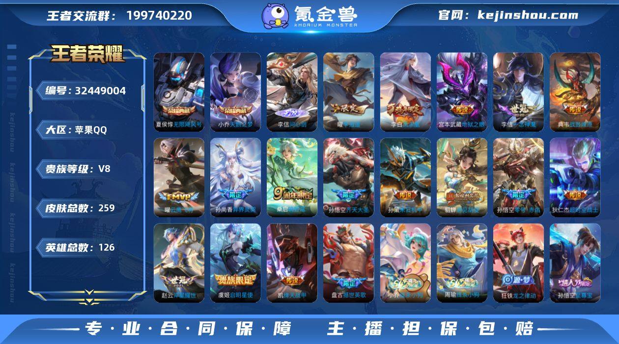 【特价出售/店主推荐/1省标/12市标/31段打野/30段对抗】:苹果Q-V8-至尊星耀V段位-128英雄-321皮肤-2典藏皮肤-1无双-3星元-13传说-87史诗 【英雄全皮】:苏烈全皮 【荣耀典藏】:孙悟空全息碎影,铠银白咏叹调 【无双皮肤】:妲己青丘九尾 【传说皮肤】:后羿神树通天,云缨幻光神枪,桑启鸣野蒿,夏侯惇霜北刀,宫本武藏惊梅引,花木兰燃星之曲,李信山海炽霜斩,李白诗剑行,马可波罗深海之息,曜李逍遥 ,虞姬启明星使,宫本武藏地狱之眼,孙悟空地狱火 【限定皮肤】:白起狰,夏侯惇霜北刀,杨戬破阵退雄兵,李白谪仙醉月,狄仁杰阴阳师,赵云皇家上将,墨子降魔,庄周高山流水,高渐离玩趣恶龙,阿轲迷踪丽影,钟无艳超时空战士,芈月重明,元歌云间偶戏,元歌无心,夏侯惇朔风刀,甄姬落雪兰心,曹操烛龙,典韦穷奇,马可波罗深海之息,狄仁杰魔术师,狄仁杰万华元夜,达摩沙漠行僧,项羽海滩派对,老夫子醍醐杖,关羽冰锋战神,程咬金演武夺筹,刘邦夺宝奇兵,花木兰燃星之曲,亚瑟潮玩骑士王,孙悟空至尊宝,牛魔御旌,李元芳云中旅人,虞姬启明星使,钟馗驱傩正仪,杨玉环遇见飞天,干将莫邪冰霜恋舞曲,雅典娜黎明之约,蔡文姬繁星吟游,太乙真人饕餮,鬼谷子原初探秘者,鬼谷子五谷丰年,苏烈玄武志,苏烈千军破阵,百里玄策原初追逐者,弈星混沌棋,梦奇顽趣,沈梦溪星空之诺,沈梦溪大漠名商,明世隐疑决卦,裴擒虎李小龙,裴擒虎擒涛扼浪,狂铁御狮,米莱狄御霄,云中君纤云弄巧,李信山海炽霜斩,盾山御銮,上官婉儿梁祝,嫦娥拒霜思,嫦娥暖冬兔眠,曜李逍遥 ,鲁班大师探海日志,桑启海盐诗旅,暃星界游侠,艾琳流音漫舞,司空震地狱燃心,阿古朵江河有灵,张良古海寻踪,蒙犽百解令,蒙恬荣光圣徽,高渐离燃音魔法,妲己灵卜魔法,鬼谷子天穹祈灯,伽罗琥珀纪元,姬小满妄想食味,沈梦溪龙舞盛...