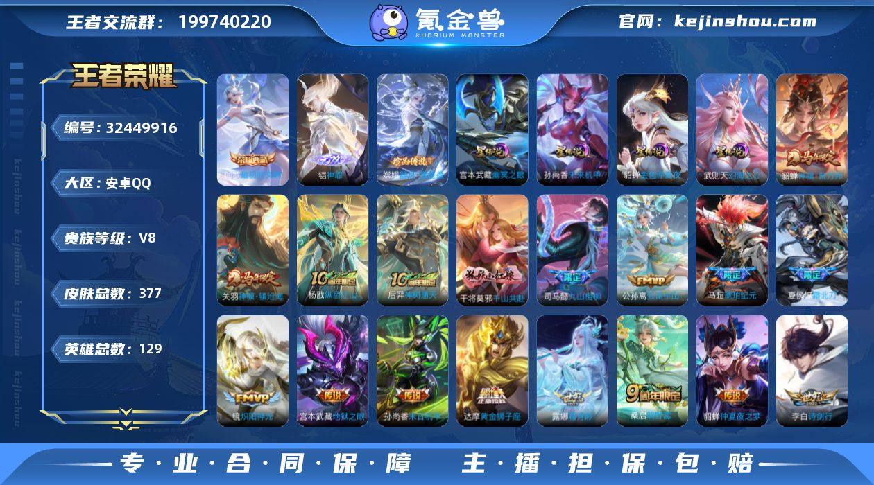 可换绑【高性价比·伽罗双典藏含武则天英雄·铠无双·嫦娥珍品·马年关羽貂蝉·霜北刀·马超琥珀纪元】4星传说 20按键 14王者印记 满级铭文 可二次BX5354 安卓Q-V8-377皮肤-1典藏皮肤-1典藏英雄-1无双-1珍品传说-23传说-114史诗【英雄全皮】:刘邦全皮,孙权全皮,敖隐全皮,空空儿全皮,海诺全皮【荣耀典藏】:武则天英雄,伽罗最初的交响【无双皮肤】:铠神罪【珍品传说】:嫦娥器灵落星盏【星元皮肤】:孙尚香未来机甲,武则天幻海之心,宫本武藏幽冥之眼,貂蝉金色仲夏夜【传说皮肤】:关羽神骥镇沧海,貂蝉神骥聚万邦,杨戬纵目迁山,后羿神树通天,干将莫邪千山共赴,司马懿九山相柳,公孙离云诺千山,桑启鸣野蒿,夏侯惇霜北刀,马超琥珀纪元,露娜霜月吟,李白诗剑行,貂蝉遇见胡旋,李元芳飞鸢探春,镜炽阳神光,虞姬启明星使,貂蝉猫影幻舞,达摩黄金狮子座,梦奇胖达荣荣,貂蝉仲夏夜之梦,孙尚香末日机甲,宫本武藏地狱之眼,武则天海洋之心【限定皮肤】:夏侯惇霜北刀,大乔绒语心约,虞姬夏日便利店,姜子牙天穹之誓,杨戬破阵退雄兵,狄仁杰阴阳师,赵云皇家上将,墨子神迹守卫,妲己时之彼端,嬴政白昼王子,孙尚香蔷薇恋人,鲁班七号狮舞东方,高渐离死亡摇滚,高...