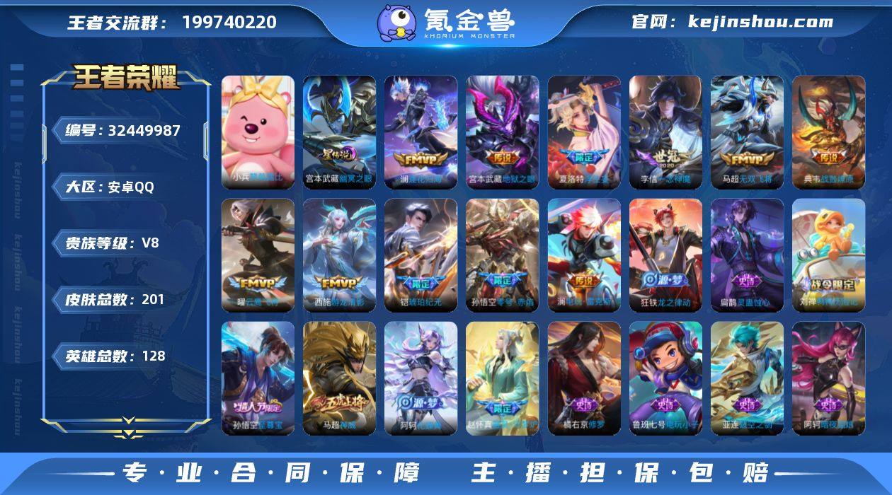 【店长推荐·九霄神辉·幽冥之眼·澜愿照九州拓·战鼓燎原·铠琥珀纪元·澜逐花归海·浮生妄·无双飞将·零号赤焰·一念神魔·百木心枪·山海玄木吟·可二次】w20130-安卓Q-128英雄-201皮肤-3王者印记-82铭文-贵族积分5w【贵族8】【1典藏·1星传说·15传说·9按键】【因赛季更新游戏段付以上号为准!】 【英雄全皮】:孙权全皮,敖隐全皮,澜全皮 【荣耀典藏】:花木兰九霄神辉 【星元皮肤】:宫本武藏幽冥之眼 【传说皮肤】:澜愿照九州拓,桑启鸣野蒿,典韦战鼓燎原,铠琥珀纪元,澜逐花归海,澜电玩雷克斯,夏洛特浮生妄,吕布怒海麟威,马超无双飞将,西施游龙清影,虞姬启明星使,孙悟空零号赤焰,曜云鹰飞将,李信一念神魔,宫本武藏地狱之眼 【限定皮肤】:姜子牙天穹之誓,狄仁杰阴阳师,赵云皇家上将,赵云百木心枪,高渐离玩趣恶龙,元歌无心,马可波罗山海玄木吟,狄仁杰魔术师,项羽海滩派对,孙悟空至尊宝,孙悟空零号赤焰,孙悟空孙行者,虞姬启明星使,裴擒虎擒涛扼浪,上官婉儿梁祝,鲁班大师探海日志,桑启海盐诗旅,夏洛特浮生妄,张良古海寻踪,蒙犽百解令,高渐离燃音魔法,妲己灵卜魔法,鬼谷子天穹祈灯,铠琥珀纪元,沈梦溪龙舞盛年,鲁班七号蔬乡物语,刘邦剑破天穹,刘...