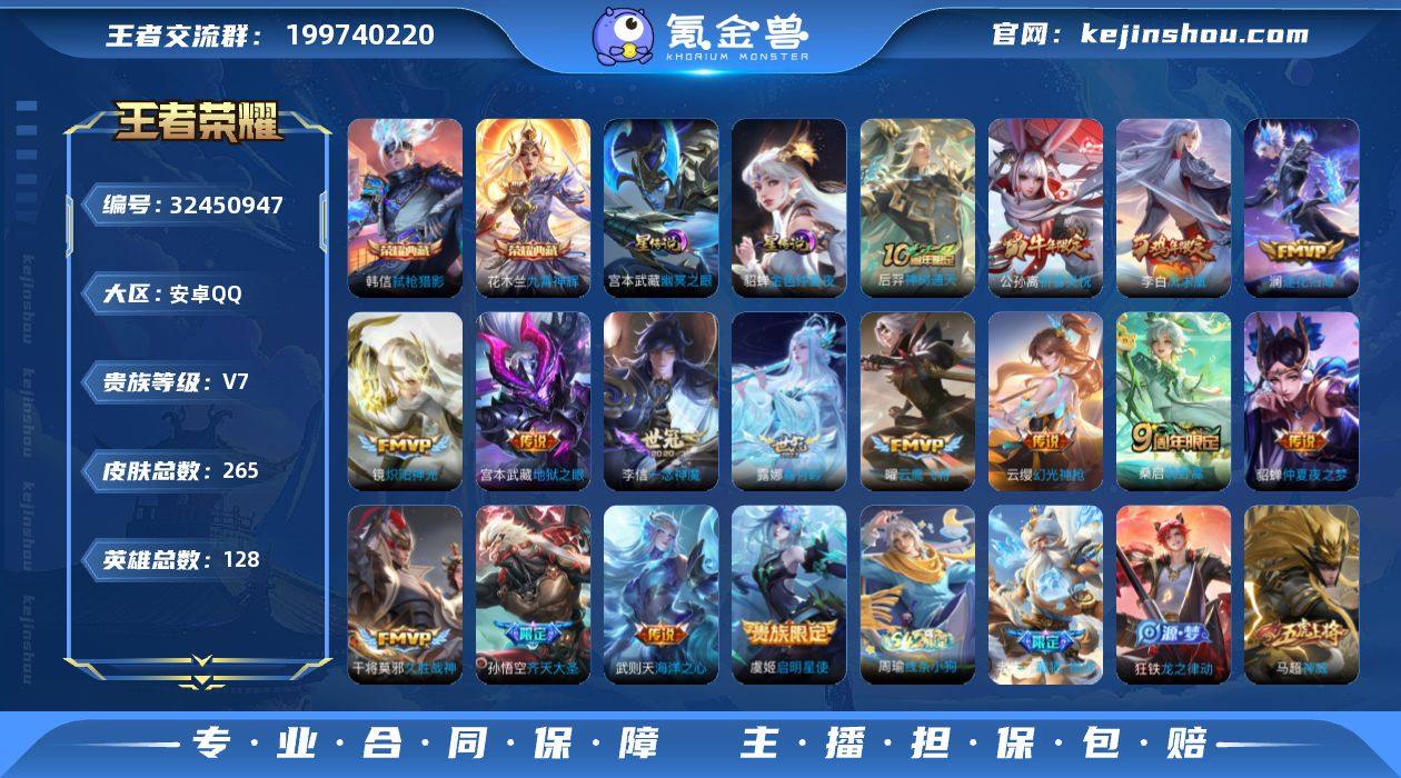 【XY372】贵族7/皮肤193/典藏1/传说18/史诗57/英雄126/孙权全皮/镜全皮/影全皮/星域神启/后羿神树通天/霜月吟/记忆之芯/炽翼辉光/齐天大圣/山海·苍雷引/山海·炽霜斩/诗剑行/碎云/无双飞将/时雨天司/炽阳神光/云鹰飞将/久胜战神/胖达荣荣/黄金射手座/末日机甲-孙尚香/地狱之眼/蔡文姬夏日便利店/虞姬夏日便利店/天穹之誓(s36)/阴阳师/皇家上将/超时空战士-钟无艳/奇幻香踪/无心/落雪兰心/山海·玄木吟/魔术师/沙漠行僧(s26)/海滩派对/飞衡/孙行者/云中旅人(s29)/潮玩骑兵/黎明之约/五谷丰年/烈魂/原初追遂者/顽趣-梦奇/李小龙/擒涛扼浪(s31)/神器·万象笔/暖冬·兔眠/玲珑珍味/探海日志(s32)/匿光追影者/海盐诗旅(s30)/星界游侠/驭风魔法/地狱燃心/江河有灵/古海寻踪(s33)/蒙恬荣光圣徽/鬼谷子天穹祈灯(S34)/妄想食味/龙武盛年/剑破天穹(s35)/青焰无极/苍威无极/噬灭天穹(s37)/谧流熔炉/逆浪荇歌/亚瑟荣光之誓/星界战将/项羽九幽镇关/百相守梦-周瑜/百相守梦-孙策/电玩小子/紫霞仙子/未来纪元-赵云/圣诞恋歌/冰雪圆舞曲/水果甜心/摇滚巨星/魅力维加斯/绅士熊喵/千年之狐/末日机甲-吕布/水晶猎龙者/德古拉伯爵/冰冠公主/心灵骇客/特工魅影/天才门将/星夜王子/猫狗日记-大乔/鹰眼统帅/时之恋人-孙尚香/赏金猎手/玫瑰异探/电玩·爆裂旋风/真我赫兹(镜)/龙之律动/灵蛊蚀心/石田雨龙/女娲万灵启世/少司缘巫礼祀神/教廷特使/街头霸王/白执事/忍·炎影/红桃皇后/星际陆战队(程咬金)/白色死神/东方不败/化身博士/天使之翼/时尚教父/少女阿狸/黄金武士/死亡骑士/拳王/兔女郎/五福同心/花好人间/万象初新/纽约教父/汉昭烈帝/龙腾万里/海滩丽影/幻想奇妙夜/功夫老勺/沉稳之力/掌控之力/敏锐之力/虹云星官/归虚梦演-蒙犽/鲨炮海盗猫/炽热元素使/圆桌骑士(盾山)/特工战影/乓乓大师/无双福将/蔚蓝守将/幻泉雾影-海月/潮玩探月行/牛...