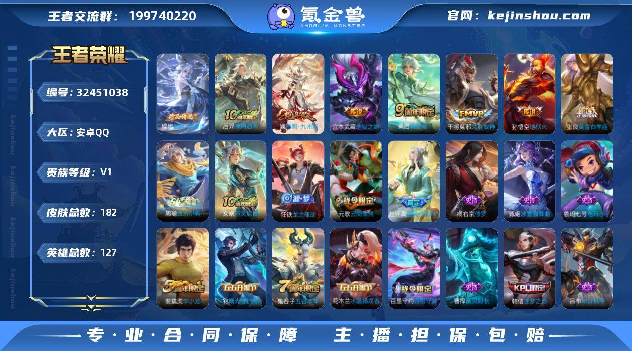 可二次【特价出售/店主推荐】安卓Q-V0-尊贵铂金III段位-127英雄-182皮肤-1珍品传说-7传说-45史诗 【珍品传说】:嫦娥器灵落星盏 【传说皮肤】:后羿神树通天,澜愿照九州拓,桑启鸣野蒿,张良黄金白羊座,干将莫邪久胜战神,宫本武藏地狱之眼,孙悟空地狱火 【限定皮肤】:姜子牙天穹之誓,狄仁杰阴阳师,赵云皇家上将,墨子神迹守卫,嬴政优雅恋人,吕布猎兽之王,元歌云间偶戏,狄仁杰万华元夜,达摩沙漠行僧,项羽海滩派对,老夫子醍醐杖,老夫子航海奇遇记,程咬金演武夺筹,韩信逐梦之影,兰陵王金庭之子,亚瑟潮玩骑士王,李元芳云中旅人,钟馗驱傩正仪,干将莫邪胡桃夹子,雅典娜黎明之约,鬼谷子原初探秘者,鬼谷子五谷丰年,苏烈千军破阵,百里玄策原初追逐者,梦奇顽趣,沈梦溪大漠名商,明世隐疑决卦,裴擒虎李小龙,裴擒虎擒涛扼浪,猪八戒西部大镖客,鲁班大师探海日志,桑启海盐诗旅,阿古朵江河有灵,张良古海寻踪,蒙恬荣光圣徽,鬼谷子天穹祈灯,刘邦剑破天穹 【年限皮肤】:澜愿照九州拓 【赛季限定】:明世隐疑决卦,老夫子醍醐杖,鬼谷子原初探秘者,狄仁杰万华元夜,程咬金演武夺筹,钟馗驱傩正仪,苏烈千军破阵,达摩沙漠行僧,兰陵王金庭之子,沈梦溪...