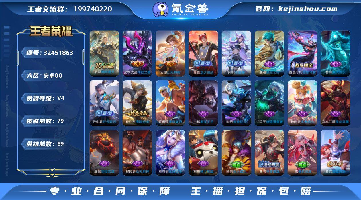 -V4-【可二次 2太阳 0违规】地狱之眼 幻光神枪 神树通天-至尊星耀IV-89英雄-79皮肤-0典藏-0无双-0珍品传说-4传说-18史诗 【稀有英雄】 橘右京 韩信 艾琳 赵云 【传说皮肤】 地狱之眼 幻光神枪 神树通天 鸣野蒿 【限定皮肤】 地狱之眼 【史诗皮肤】 鬼剑武藏 星夜王子 龙之律动 遇见飞天 鹰眼统帅 纤云弄巧 未来纪元 冰冠公主 功夫厨神 破空之剑 地狱岩魂 绅士熊喵 百相守梦 水果甜心 化蝶舞 幽灵船长 乘风破浪 暗隐猎兽者 【勇者皮肤】 时空谍影 海盐诗旅 白色死神 黄金武士 王牌新星 阴阳师 次元突破 海滩派对 星空之诺 天穹祈灯 虹云星官 救世之瞳 死亡骑士 破局者 掌控之力 雪境奇遇 逐霄战戟 乓乓大师 雾都夜雨 未来纪元 万象初新 时尚教父 秘密基地 街头霸王 命运角斗场 白执事 神迹守卫 铁骨偃魂 苍林狼骑 天穹之誓 魅影绮裳 谧流熔炉 金福满堂 百相守梦 噬灭天穹 灵卦秘语 动物派对 敬我三分 怪诞之夜 爆裂喵拳 玫蓝誓约 【其他皮肤】 龙域领主 木偶奇遇记 精灵王 绯红之刃 街头旋风 占星师 埃及法老 画中游 创世神祝 孤猎