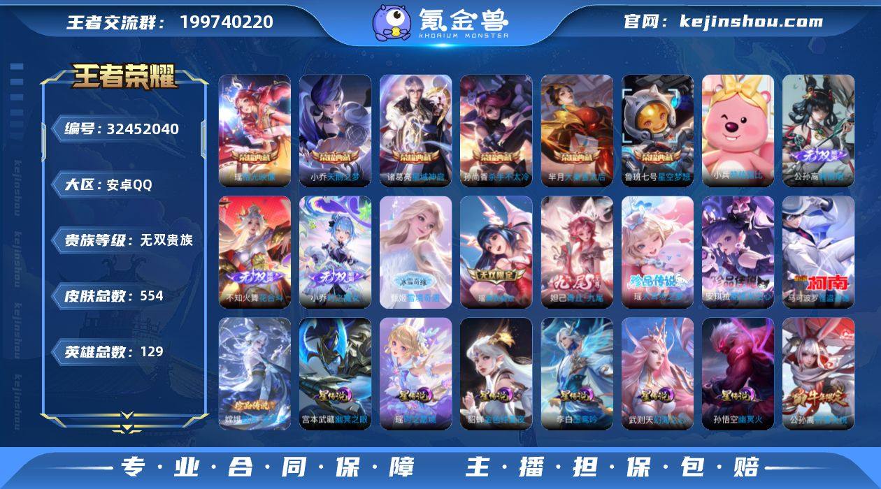 ·11典藏·4无双·4珍品·6星传说·92传说·2精品天幕·龙年限定灵宝·蛇年限定灵宝·4W亲密度·全皮瑶带紫瑶·全皮小乔·全皮甄姬·全皮杨玉环·全皮女娲·全皮大乔·全皮嫦娥·全皮西施·全皮海月·全皮露娜·金标瑶·金标小乔·太华红枫·岁雨灵司·玉鸾吟·无限倾慕·雪境奇遇天幕·满牛年限定·满虎年限定·满兔年限定·满龙年限定·满蛇年限定·李逍遥·千劫归真·夜礼服假面·永恒水手月亮·可二次】w16116-安卓WX-128英雄-605皮肤-19王者印记-300铭文-贵族积分43w【贵族10】【v10·11典藏·4无双·4珍品·6星传说·92传说·3天幕·52按键·760个性戳戳】【因赛季更新游戏段付以上号为准!】 【英雄全皮】:小乔全皮,嬴政全皮,刘禅全皮,阿轲全皮,甄姬全皮,达摩全皮,露娜全皮,刘邦全皮,孙权全皮,娜可露露全皮,橘右京全皮,杨玉环全皮,苍全皮,女娲全皮,东皇太一全皮,大乔全皮,梦奇全皮,沈梦溪全皮,瑶全皮,猪八戒全皮,亚连全皮,嫦娥全皮,海月全皮,西施全皮,鲁班大师全皮,镜全皮,阿古朵全皮,司空震全皮,金蝉全皮,赵怀真全皮,戈娅全皮,空空儿全皮,影全皮,海诺全皮,少司缘全皮 【荣耀典藏】:武则天英雄,武则天倪克斯神谕,小乔天鹅之梦,鲁班七号星空梦想,芈月大秦宣太后,诸葛亮星域神启,花木兰九霄神辉,貂蝉幻阙歌,虞姬神鉴启示录,瑶拾光映像,伽罗最初的交响 【无双皮肤】:瑶真我赫兹,小乔时之魔女,甄姬雪境奇遇,曜器灵螭龙剑 【珍品传说】:孙策时之奇旅,嫦娥器灵落星盏,瑶大耳狗之梦,安琪拉酷洛米之心 【星元皮肤】:诸葛亮岁雨灵司,伽罗太华红枫,李白玉鸾吟,虞姬无限倾慕,瑶时之愿境,貂蝉金色仲夏夜 【天幕】:雪境奇遇天幕,路在脚下天幕,共赏芳华天幕 【传说皮肤】:后羿神树通天,公孙离云诺千山,西施续相思,杨玉环星之鸣奏,后羿千劫归真,司空震愿照山河定,女娲愿照千秋盛,妲己愿照众生和...