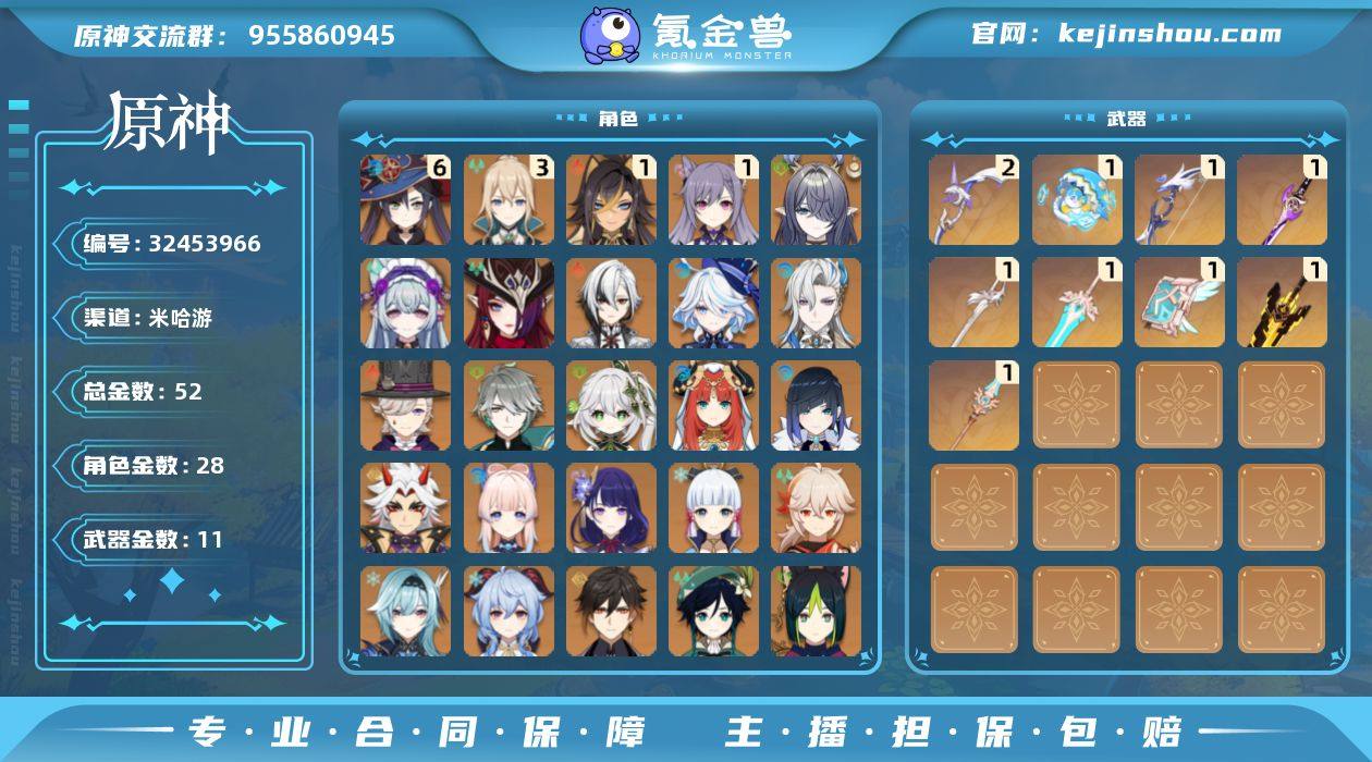 【YSF1695】60级/52黄/女主/28个五星角色/11个五星武器/阿蕾奇诺/钟离/夜兰/荒泷一斗/恰斯卡/枫原万叶/优菈/甘雨/神里绫华/雷电将军/一命刻晴/纳西妲/芙宁娜/那维莱特/珊瑚宫心海/林尼/温迪/艾尔海森/满命莫娜/迪卢克/菈乌玛/妮露/三命琴/七七/埃洛伊/梦见月瑞希/提纳里/一命迪希雅/无工之剑/雾切之回光/若水/阿莫斯之弓/冲浪时光/风鹰剑/天空之卷/天空之脊/天空之傲