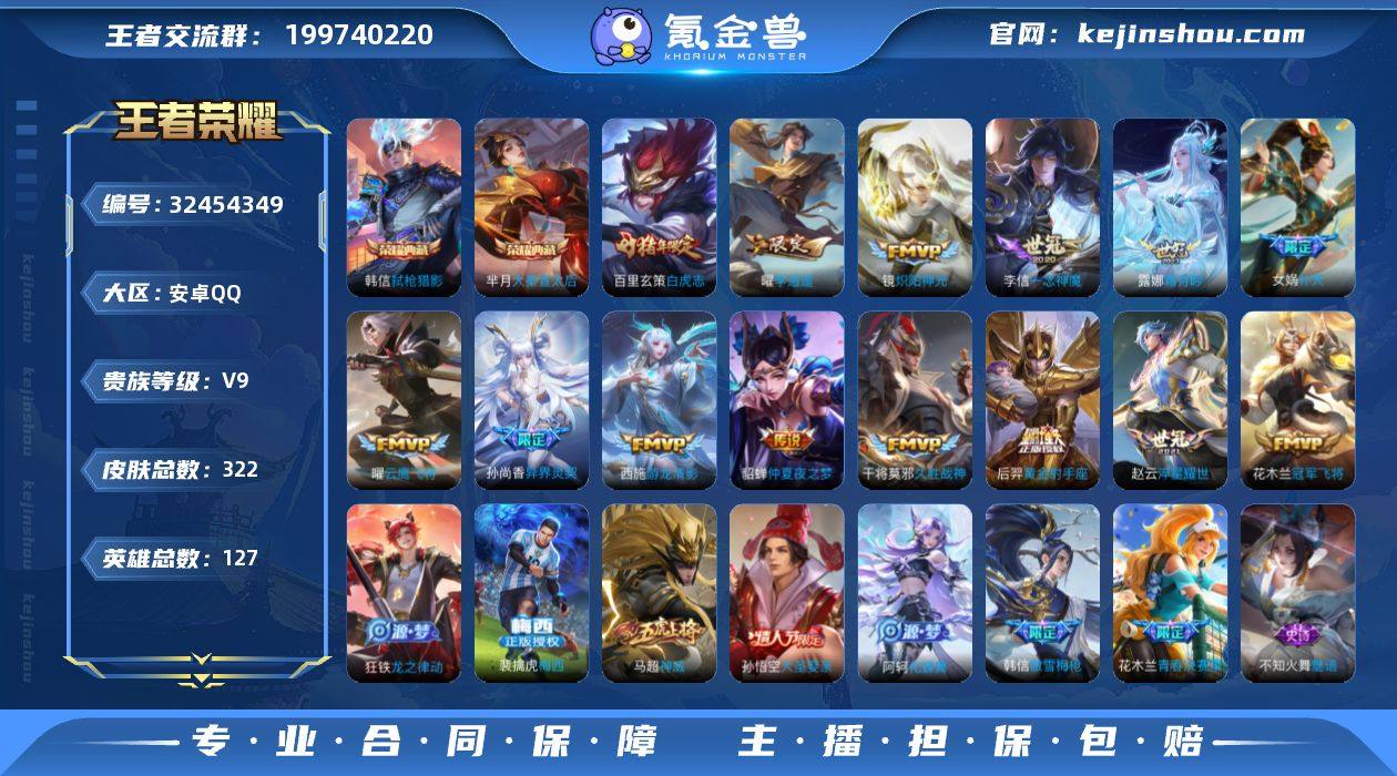 V9 2典藏 22传说 127英雄 322皮肤 可修改实名 男号 【英雄全皮】孙权全皮,蚩奼全皮,狂铁全皮,大禹全皮 【稀有英雄】大司命,嬴政(始皇帝),韩信(韩跳跳),夏洛特(夏师傅),艾琳,橘右京(橘子),娜可露露(鸟人),不知火舞,赵云,金蝉(唐僧),戈娅 【荣耀水晶】弑枪猎影(韩信典藏),大秦宣太后 【传说皮】李逍遥,游龙清影(小青龙),黄金射手座,仲夏夜之梦(大飞蛾),末日机甲-孙尚香(绿蚂蚱),一念神魔,淬星耀世,冠军飞将,久胜战神,云鹰飞将(小将军),炽阳神光,时之恋人-刘备(电焊工),超时空战士-狄仁杰,霜月吟 【珍宝阁皮】优雅恋人,女武神 【赛季/战令皮】噬灭天穹(s37),古海寻踪(s33),海盐诗旅(s30),擒涛扼浪(s31),探海日志(s32),流音漫舞,顽趣-梦奇,地狱燃心,天穹祈灯(s34),天穹之誓(s36),凯尔特女王(s7),狰(s8),饕餮(s9),烛龙(s10),穷奇(s12),御狮(s13),御霄(s14),御旌(s15),御銮(s16),混沌棋(s18),疑决卦(s19),醍醐杖(s20),原初探秘者(s21),万华元夜(s22),演武夺筹(s23),驱傩正仪(s24),千军破阵(s25),猎兽之王,白昼王子,朔望之晖,蓝屏警告,神迹守卫-钟馗,狮舞东方,西部大镖客-猪八戒,暗影游猎(游乐娃子),单词大作战,狂想玩偶喵,潮玩骑士王,云间偶戏,神迹守卫-墨子,航海奇遇记,圣弓游侠,...
