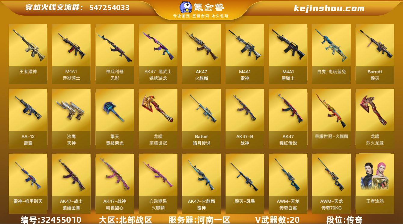 【CFQH16】20V/93级/将帅/1王者/1英雄/死亡之眼/火麒麟-荣耀世冠/白虎-电玩蓝兔/M4A1-黑骑士/龙啸-荣耀世冠/王者猎神/雷神-机甲刑天皮肤/雷神-源计划2.0专属 皮肤/火麒麟-雷神/火麒麟-心动糖果/毁灭-风暴/毁灭-秦师 皮肤/战神-粉色甜心皮肤/战神-紫绶金章皮肤/AWM-天龙-传奇70KG/AWM-天龙-传奇白鲨/战地猎狐/王者涂鸦/王者玲珑-小乔/奇洋探员/乔伊教练/修道士/云海玲珑/暗夜-X/北极狐-X/初恋灵狐/芳心审判者/飞虎队-X/虎妞/嘉年华灵狐/灵狐-花神/麻雀/曼陀罗-礼服/娜塔莉娅/潘多拉-X/青霞仙子/斯沃特-X/兔囡囡/新娜塔莎/游珑儿/AWM-灵狐-15周年嘉年华/迷你牛牛/生化手雷-机甲核心/迷你超能女侍/灵狐娃娃手雷/冰龙粉碎者-白马银枪/激光毁灭者/神圣爆裂者-末日/AK47-火麒麟/M4A1-雷神/无影-神兵利器/AK47-黑武士-锦绣游龙/AK-47-猩红传说/AK47-B-战神/荣耀世冠-火麒麟/Barrett-毁灭/Barrett-暗月传说/AA-12-雷霆/沙鹰-天神/擎天-竞技荣光/荣耀世冠-龙啸/龙啸-烈火龙威/烟雾弹-竞技荣光/M4A1-赤狱骑士/魂·火麒麟-百城/源-黑龙/御·黑龙-龙太子/魂·M4A1-雷神-化蛇/魂·雷神-诺拉/魂-雷神-萌杀/魂·雷神-15周年嘉年华/魂·雷神-萌柴/御·雷神-机甲刑天/御·雷神-烈虎/源·黑骑士/魂·黑骑士...