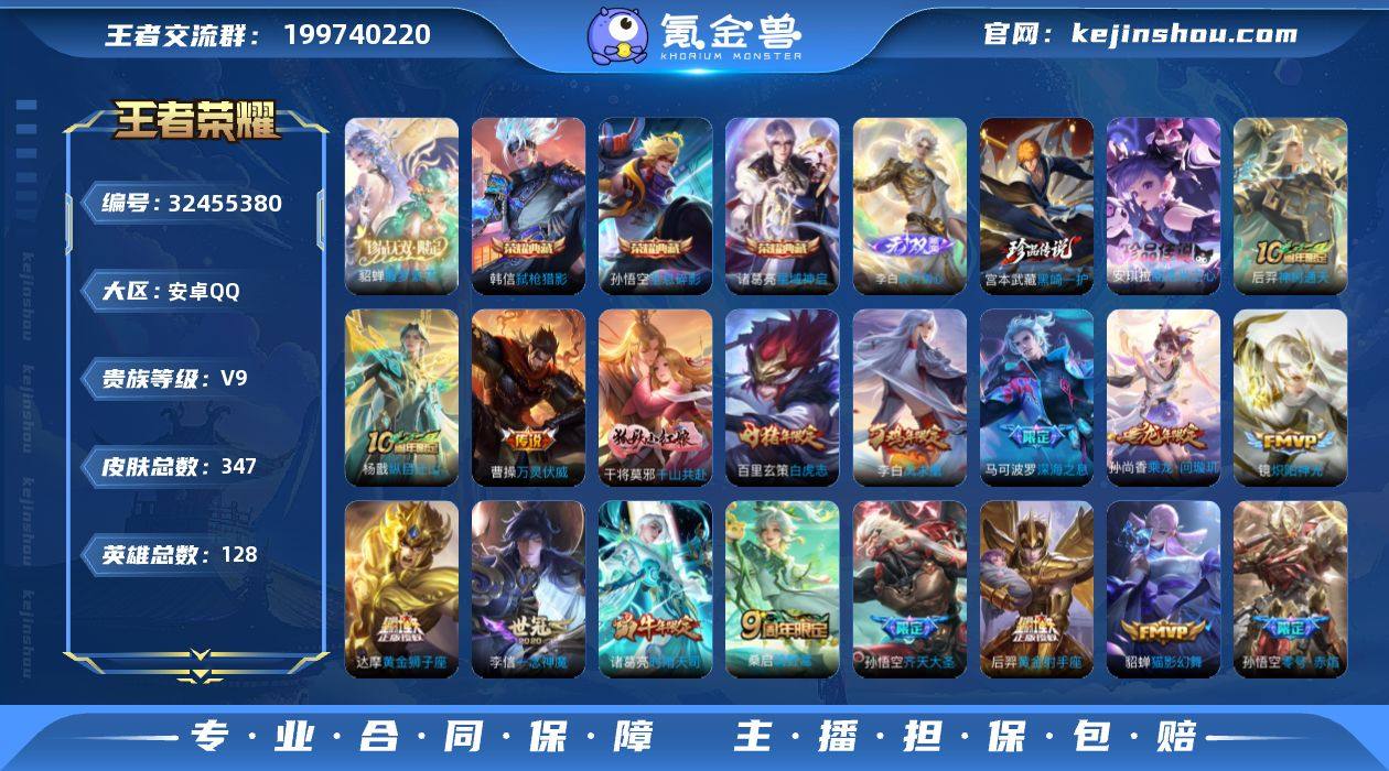 【王者荣耀】珍品无双1 典藏3 无双2 珍品传说2 传说28 史诗105 英雄128 皮肤347 贵族9级 珍品无双:馥梦繁花__荣耀典藏:全息碎影|弑枪猎影|星域神启__无双皮肤:群星魔术团|碎月剑心__珍品传说:酷洛米之心|黑崎一护__传说皮肤:鸣野蒿|深海之息|绛天战甲|炽阳神光|启明星使|地狱火|黄金狮子座|狄仁杰-超时空战士|黄金射手座|猫影幻舞|一念神魔|冠军飞将|孙尚香-末日机甲|齐天大圣|白虎志|凤求凰|零号·赤焰|马超-琥珀纪元|时雨天司|小乔-音你心动|战鼓燎原|逐花归海|乘龙·问璇玑|千山共赴|万灵伏威|神树通天|纵目迁山__稀有限定:至尊宝|大圣娶亲|引擎之心|岱宗|飞衡|蔷薇恋人|蜜橘之夏|烈魂|龙胆|傲雪梅枪|李小龙|梁祝|狮舞东方|暗影游猎|百里守约-真我赫兹|冰锋战神|地狱燃心|繁星吟游|高山流水|古海寻踪|海滩派对|海盐诗旅|胡桃异想国|皇家上将|混沌棋|剑破天穹|江河有灵|狂想玩偶喵|黎明之约|美猴王|迷踪丽影|魔术师|千军破阵|擒涛扼浪|穷奇|驱傩正仪|荣光圣徽|沙漠行僧|朔风刀|死亡摇滚|探海日志|醍醐杖|天狼绘梦者|天狼狩猎者|天狼运算者|天穹祈灯|玩趣恶龙|万华元夜|星界游侠|星空之诺|驯魔猎人|演武夺筹|疑决卦|阴阳师|银河之约|优雅恋人|御旌|御銮|御狮|云间偶戏|逐梦之影...