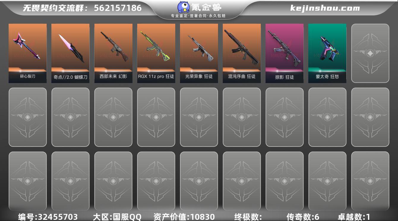 【bx6】苹果/安卓Q区 可二次 皮肤价值12120 【5橙皮 2紫皮 21皮肤 16英雄 69卡面 330已用源晶】 钻石 优质装备:近战武器-RGX 11z Pro//3.0 爪刀,近战武器-威龙之刃,狂徒-RGX 11z Pro,狂徒-盖亚的复仇, 【英雄】:幻棱,炼狱,维斯,暮蝶,钛狐,壹决,捷风,雷兹,幽影,不死鸟,贤者,猎枭,芮娜,霓虹,黑梦,钢锁 【近战 武器】:近战武器-RGX 11z Pro//3.0 爪刀,近战武器-威龙之刃,近战武器-诡秘蛇影 军刀 【狂徒】:狂徒-RGX 11z Pro,狂徒-盖亚的复仇,狂徒-离子武器//2.0,狂徒-诡秘蛇影 【幻影】:幻影-末日之翼 【戍卫】:戍卫-折光棱晶 【冥驹】:冥驹-光荣异象 【飞将】:飞将-末日之翼 【莽侠】:莽侠-诡秘蛇影 【奥丁】:奥丁-末日之翼 【判官】:判官-诡秘蛇影 【蜂刺】:蜂刺-折光棱晶 【标配】:标配-折光棱晶 【正义】:正义-超限闪存 【鬼魅】:鬼魅-流星兵团,鬼魅-诡秘蛇影,鬼魅-星云暗涌 【短炮】:短炮-末日之翼 【卡面】:《双城之战》拥抱 卡面,精灵大战 卡面,欢迎来到底城 卡面,南瓜盛典 卡面,VCT CN首冠 卡面,修车达人 卡面,热舞环节 卡面,正义的化身 卡面,最高舞台 卡面,声感陷阱设计图 卡面,霓帧牛蛙 卡面,梦幻奶茶 卡面,趁热吃 卡面,哨卫者之领域 卡面,暮蝶工牌 卡面,源能反应 卡面,零点嗅探设计图 卡面,无畏契约GO!第一卷:芮娜 卡面,无畏契约GO!第一卷:零 卡面,比比看谁快? 卡面,《双城之战》金克丝 卡面,无畏契约GO!第一卷:贤者 卡面,钢锁vs盖可 卡面,夯实根基 卡面,代号红色 卡面,新兵报到 卡面,V契约 卡面,无畏契约 卡面 【喷漆】:嗨宝南瓜灯 喷漆,嘭! 喷漆,都算到了 喷漆,控场勿近 喷漆,小丑猫 喷漆,熊抱 喷漆,蛋糕还是爆能器? 喷漆,超级粉丝 喷漆,捷风差距 喷漆,2021冠军巡回赛花火 喷漆,放我出去 喷漆,拼一枪 喷...