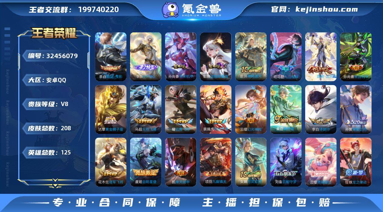 【特价出售/店主推荐】金标程咬金、金标凯、金标宫本武藏、金标杨戬、打野38段、对抗路30段,安卓Q-V8-最强王者段位-127英雄-322皮肤-1典藏皮肤-4星传说-10传说-87史诗 【英雄全皮】:孙权全皮,蒙恬全皮,空空儿全皮 【荣耀典藏】:李白鸣剑曳影 【传说皮肤】:后羿神树通天,云缨幻光神枪,桑启鸣野蒿,澜逐花归海,兰陵王默契交锋,诸葛亮时雨天司,虞姬启明星使,孙尚香末日机甲,宫本武藏地狱之眼,吕布天魔缭乱 【限定皮肤】:姜子牙天穹之誓,狄仁杰阴阳师,赵云皇家上将,嬴政白昼王子,鲁班七号狮舞东方,高渐离死亡摇滚,高渐离玩趣恶龙,阿轲迷踪丽影,芈月重明,吕布天魔缭乱,吕布猎兽之王,周瑜赤莲之焰,元歌云间偶戏,夏侯惇朔风刀,曹操烛龙,曹操天狼征服者,典韦穷奇,典韦蓝屏警告,马可波罗暗影游猎,狄仁杰魔术师,狄仁杰万华元夜,项羽海滩派对,老夫子圣诞老人,老夫子醍醐杖,关羽冰锋战神,程咬金演武夺筹,刘邦夺宝奇兵,韩信飞衡,兰陵王默契交锋,兰陵王驯魔猎人,花木兰默契交锋,亚瑟潮玩骑士王,孙悟空至尊宝,孙悟空大圣娶亲,牛魔御旌,后羿如梦令,李元芳银河之约,虞姬霸王别姬,虞姬启明星使,钟馗神迹守卫,钟馗驱傩正仪,杨玉环遇见飞天,女娲朔望之晖,干将莫邪冰霜恋舞曲,雅典娜黎明之约,蔡文姬繁星吟游,太乙真人饕餮,太乙真人华丽摇滚,鬼谷子原初探秘者,诸葛亮时雨天司,百里玄策原初追逐者,弈星混沌棋,沈梦溪星空之诺,明世隐疑决卦,裴擒虎天狼狩猎者,裴擒虎李小龙,狂铁御狮,米莱狄御霄,云中君纤云弄巧,盾山御銮,猪八戒西部大镖客,上官婉儿梁祝,上官婉儿天狼绘梦者,嫦娥暖冬兔眠,西施玲珑珍味,鲁班大师探海日志,艾琳流音漫舞,司空震地狱燃心,阿古朵江河有灵,张良古海寻踪,裴擒虎梅西,蒙恬荣光圣徽,高渐离燃音魔法,妲己灵卜魔法,鬼谷子天...
