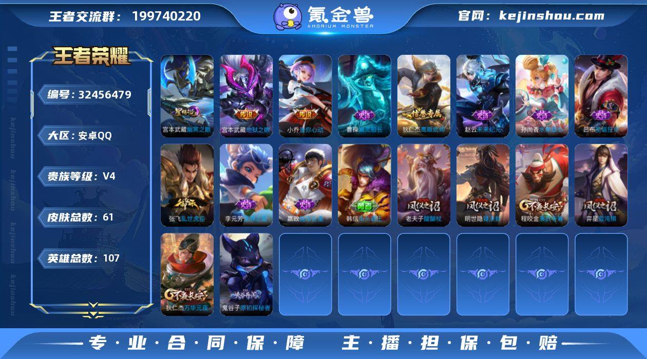 JJ4118:安卓Q【可二次 V4 2传说1星传 地狱之眼 音你心动 幽冥之眼】说非凡王者-107英雄-61皮肤-2传说-9史诗 【稀有英雄】 不知火舞 橘右京 夏洛特 娜可露露 韩信 艾琳 赵云 【传说皮肤】 地狱之眼 音你心动 【限定皮肤】 地狱之眼 【史诗皮肤】 摇滚巨星 鹰眼统帅 李小龙 逐浪之夏 未来纪元 圣诞狂欢 乱世虎臣 水果甜心 幽灵船长 【勇者皮肤】 爱与正义 醍醐杖 黄金武士 阴阳师 次元突破 海滩派对 完美运算 万华元夜 演武夺筹 红桃皇后 野性能量 哥特玫瑰 原初探秘者 疑决卦 阿尔法小队 星际陆战队 玩偶对对碰 掌控之力 海滩丽影 忍·炎影 雪境奇遇 坚韧之力 乓乓大师 未来纪元 花好人间 教廷特使 街头霸王 少女阿狸 混沌棋 白执事 神迹守卫 【其他皮肤】 圣殿之光 棒球奇才 超能战警 灼热之刃 木偶奇遇记 帝国元帅 精灵王 绯红之刃 隐刃 尼罗河女神 西部大镖客 威尼斯狂欢 特种部队 加勒比小姐