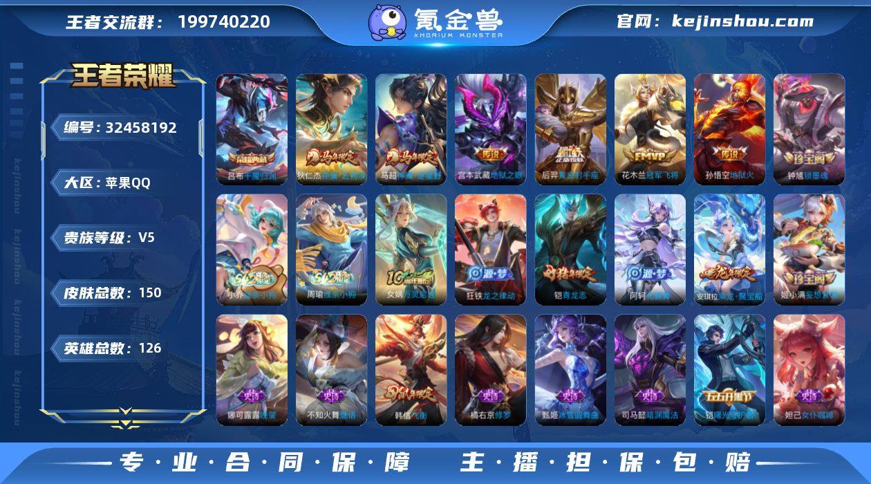 无二次-苹果Q-V5-最强王者段位-126英雄-150皮肤-1典藏皮肤-6传说-32史诗HZ2631712 【英雄全皮】:孙权全皮 【荣耀典藏】:吕布千魇归渊 【传说皮肤】:狄仁杰神骥赴朔漠,马超神骥逐星野,花木兰冠军飞将,后羿黄金射手座,宫本武藏地狱之眼,孙悟空地狱火 【限定皮肤】:姜子牙天穹之誓,狄仁杰阴阳师,赵云皇家上将,夏侯惇朔风刀,典韦穷奇,狄仁杰万华元夜,项羽海滩派对,老夫子醍醐杖,程咬金演武夺筹,韩信飞衡,牛魔御旌,钟馗驱傩正仪,鬼谷子原初探秘者,铠青龙志,百里玄策原初追逐者,弈星混沌棋,明世隐疑决卦,狂铁御狮,米莱狄御霄,盾山御銮,张良古海寻踪,鬼谷子天穹祈灯,姬小满妄想食味,安琪拉乘龙聚宝船,刘邦剑破天穹,程咬金群星魔术团,刘备异域游侠,周瑜熔金海岸 【年限皮肤】:铠青龙志,韩信飞衡,安琪拉乘龙聚宝船 【赛季限定】:典韦穷奇,狂铁御狮,米莱狄御霄,牛魔御旌,盾山御銮,夏侯惇朔风刀,弈星混沌棋,明世隐疑决卦,老夫子醍醐杖,鬼谷子原初探秘者,狄仁杰万华元夜,程咬金演武夺筹,钟馗驱傩正仪,张良古海寻踪,鬼谷子天穹祈灯,刘邦剑破天穹,姜子牙天穹之誓,太乙真人谧流熔炉,钟馗虚灵犬护,甄姬逆浪荇歌,亚瑟荣光之誓,百...