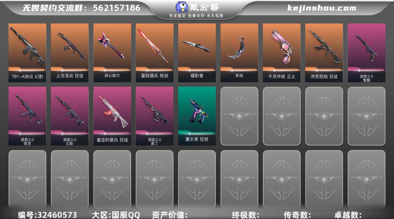 S194006(掠影//2.0套装)无畏契约/113级/青铜I/15英雄/39皮肤/资产20170/已使用R点600/剩余R点40/剩余点卷394/洪荒怒焰-狂徒,上古龙炎-狂徒,781-A协议-幻影,盖亚的复仇-狂徒,碎心裂刃,星际猎兵-短剑,噬影者-簇刃,掠影//2.0-幻影,掠影//2.0-奥丁,掠影//2.0-骇灵,掠影//2.0-鬼魅,影钩,千灵华绽-正义