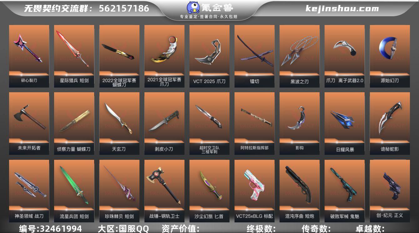 S194030【21冠军/22冠军/23冠军/25冠军/离火刃/三棱军刺/离子武器//2.0套装/虚空遗器套装/西部未来套装/创纪元套装】无畏契约/402等级/超凡段位/28英雄/193皮肤/资产112690/已使用R点2375/剩余R点10/ 2021全球冠军赛-狂徒,2021全球冠军赛-爪刀,2022全球冠军赛-幻影,2022全球冠军赛-蝴蝶刀,无畏契约季前邀请赛-悲悯之刃,碎心裂刃,星际猎兵-短剑,阿特拉斯指挥部-甩棍,日耀风暴-遗器,诡秘蛇影-军刀,神圣领域-战刀,VCT-2025-爪刀,流星兵团-短剑,珍珠棘贝-短剑,钢轨卫士-战锤,沙尘幻旅-匕首,离火刃,超时空卫队-三棱军刺,影钩,黑波之刃,天玄刀,剥皮小刀,侦察力量-蝴蝶刀,起源-冥驹,离子武器-冥驹,混沌序曲-蜂刺,起源-雄鹿,VCT25-x-BLG-标配,混沌序曲-短炮,破败军械-鬼魅,奇点-正义,天界神兵-鬼魅,盖世英雄-鬼魅