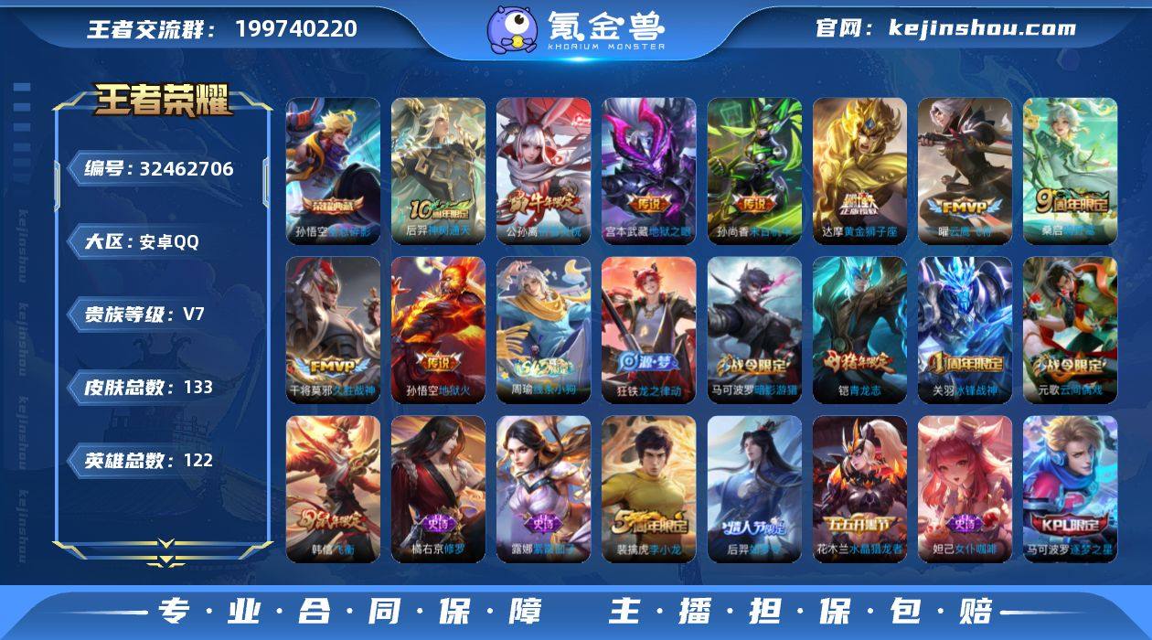 【5040】安卓Q-V6-最强王者段位-127英雄-203皮肤-1典藏皮肤-9传说-66史诗 【英雄全皮】:孙权全皮 【荣耀典藏】:吕布千魇归渊 【传说皮肤】:韩信踏浪归,貂蝉神骥聚万邦,后羿神树通天,澜愿照九州拓,桑启鸣野蒿,孙悟空齐天大圣,铠绛天战甲,宫本武藏地狱之眼,孙悟空地狱火 【限定皮肤】:蒙犽顽岩魄,虞姬夏日便利店,姜子牙天穹之誓,狄仁杰阴阳师,赵云皇家上将,孙尚香蔷薇恋人,庄周高山流水,阿轲迷踪丽影,元歌云间偶戏,马可波罗暗影游猎,狄仁杰魔术师,达摩沙漠行僧,项羽海滩派对,兰陵王金庭之子,孙悟空至尊宝,孙悟空大圣娶亲,孙悟空齐天大圣,李元芳云中旅人,干将莫邪胡桃夹子,百里玄策原初追逐者,沈梦溪大漠名商,裴擒虎擒涛扼浪,嫦娥拒霜思,鲁班大师探海日志,桑启海盐诗旅,艾琳流音漫舞,司空震地狱燃心,阿古朵江河有灵,张良古海寻踪,蒙犽百解令,鬼谷子天穹祈灯,沈梦溪龙舞盛年,刘邦剑破天穹,程咬金群星魔术团,刘备异域游侠,周瑜熔金海岸 【年限皮肤】:澜愿照九州拓 【赛季限定】:达摩沙漠行僧,兰陵王金庭之子,沈梦溪大漠名商,李元芳云中旅人,桑启海盐诗旅,裴擒虎擒涛扼浪,鲁班大师探海日志,张良古海寻踪,鬼谷子天穹祈灯,...