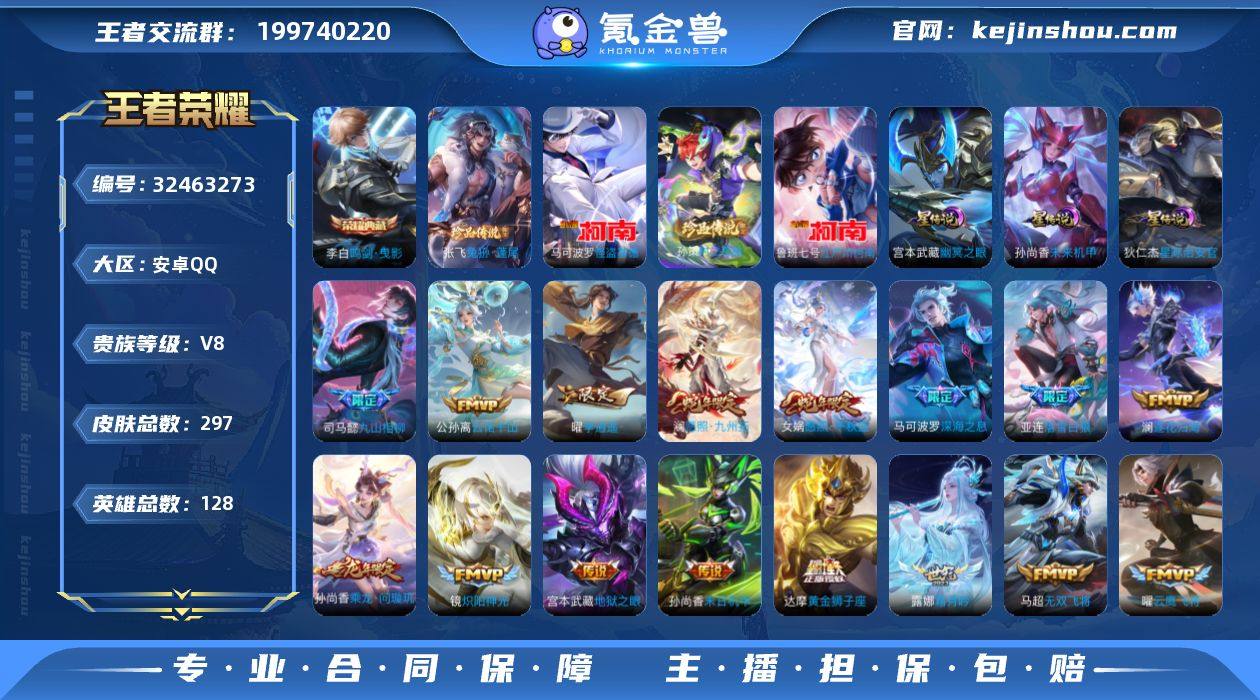 【高性价比·金标赵怀真·万战马可波罗·准万战大小姐·鸣剑曳影·怪盗基德·江户川柯南·孙策时之奇旅·兔狲蓬尾·深海之息·落雪白狼·李逍遥·诗剑行·妄想奇谈·乘龙问璇玑·愿照九州拓·愿照千秋盛·挚爱之约·霜月吟·祥瑞亨通·九山相柳·云诺千山·记忆之芯·神威·山海玄木吟·傲雪梅枪·可二次】YXw18788-安卓Q-128英雄-297皮肤-15王者印记-210铭文-贵族积分6w【贵族8】【1典藏·4珍品·4星传说·27传说·13按键】【因赛季更新游戏段付以上号为准!】 【英雄全皮】:司马懿全皮,孙权全皮,刘备全皮,亚连全皮,敖隐全皮,蒙恬全皮,空空儿全皮,影全皮 【荣耀典藏】:李白鸣剑曳影 【珍品传说】:张飞兔狲蓬尾,孙策时之奇旅,鲁班七号江户川柯南,马可波罗怪盗基德 【金标】:金标赵怀真 【星元皮肤】:狄仁杰星际治安官,刘备时之思念,孙尚香未来机甲,宫本武藏幽冥之眼 【传说皮肤】:司马懿九山相柳,公孙离云诺千山,女娲愿照千秋盛,澜愿照九州拓,裴擒虎祥瑞亨通,桑启鸣野蒿,亚连落雪白狼,孙尚香乘龙问璇玑,澜逐花归海,露娜霜月吟,上官婉儿妄想奇谈,公孙离记忆之芯,李白诗剑行,马可波罗深海之息,马超无双飞将,孙策挚爱之约,曜李逍遥 ,镜炽阳神光,虞姬启明星使,曜云鹰飞将,...