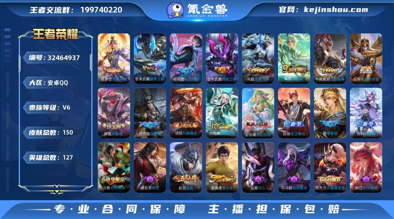 无二次-安卓Q-V6-最强王者段位-124英雄-133皮肤-1典藏皮肤-7传说-28史诗 【英雄全皮】:敖隐全皮 【荣耀典藏】:吕布千魇归渊 【传说皮肤】:马超神骥逐星野,花木兰异界灵契,澜愿照九州拓,桑启鸣野蒿,澜逐花归海,花木兰冠军飞将,宫本武藏地狱之眼 【限定皮肤】:姜子牙天穹之誓,狄仁杰阴阳师,赵云皇家上将,孙尚香蔷薇恋人,狄仁杰魔术师,狄仁杰万华元夜,达摩沙漠行僧,项羽海滩派对,兰陵王金庭之子,李元芳云中旅人,钟馗驱傩正仪,干将莫邪胡桃夹子,鬼谷子原初探秘者,梦奇顽趣,沈梦溪大漠名商,裴擒虎李小龙,裴擒虎擒涛扼浪,桑启海盐诗旅,鬼谷子天穹祈灯,沈梦溪龙舞盛年,刘邦剑破天穹,程咬金群星魔术团,刘备异域游侠,周瑜熔金海岸 【年限皮肤】:澜愿照九州拓 【赛季限定】:鬼谷子原初探秘者,狄仁杰万华元夜,钟馗驱傩正仪,达摩沙漠行僧,兰陵王金庭之子,沈梦溪大漠名商,李元芳云中旅人,桑启海盐诗旅,裴擒虎擒涛扼浪,鬼谷子天穹祈灯,刘邦剑破天穹,姜子牙天穹之誓,东皇太一噬灭天穹,太乙真人谧流熔炉,钟馗虚灵犬护,甄姬逆浪荇歌,亚瑟荣光之誓,梦奇顽趣,牛魔星界战将,项羽九幽镇关 【战令限定】:亚连破空之剑,孙悟空神迹守卫,周瑜...