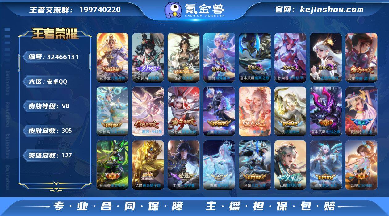 【秒换绑】安卓Q-V9-永恒钻石I段位-129英雄-202皮肤-5典藏皮肤-1典藏英雄-2无双-14传说-67史诗 【英雄全皮】:影全皮 【荣耀典藏】:武则天英雄,孙悟空全息碎影,夏侯惇无限飓风号,孙尚香杀手不太冷,李白鸣剑曳影,诸葛亮星域神启 【无双皮肤】:韩信群星魔术团,武则天神器明辉仪 【传说皮肤】:后羿神树通天,马超琥珀纪元,孙悟空齐天大圣,李白诗剑行,马可波罗深海之息,鲁班七号寅虎瑞焰,曜李逍遥 ,虞姬启明星使,孙悟空零号赤焰,曜云鹰飞将,李白凤求凰,宫本武藏地狱之眼,吕布天魔缭乱,武则天海洋之心 【限定皮肤】:姜子牙天穹之誓,狄仁杰阴阳师,赵云皇家上将,墨子神迹守卫,鲁班七号寅虎瑞焰,庄周高山流水,高渐离玩趣恶龙,扁鹊奇幻香踪,芈月幻夜卜梦,吕布天魔缭乱,夏侯惇朔风刀,马可波罗暗影游猎,马可波罗深海之息,狄仁杰魔术师,狄仁杰万华元夜,达摩沙漠行僧,项羽海滩派对,老夫子醍醐杖,老夫子航海奇遇记,关羽冰锋战神,程咬金演武夺筹,韩信飞衡,韩信傲雪梅枪,兰陵王金庭之子,孙悟空至尊宝,孙悟空零号赤焰,孙悟空孙行者,孙悟空齐天大圣,李元芳云中旅人,虞姬启明星使,钟馗驱傩正仪,杨戬潮玩骑兵,雅典娜黎明之约,鬼谷子原初探...